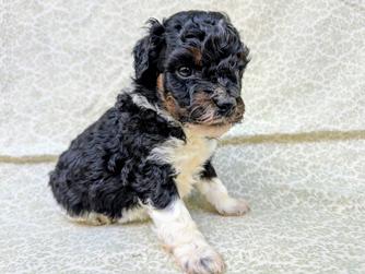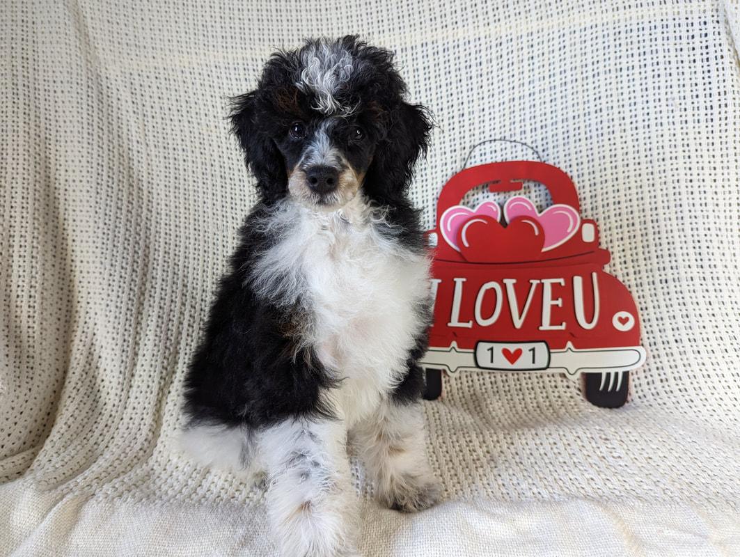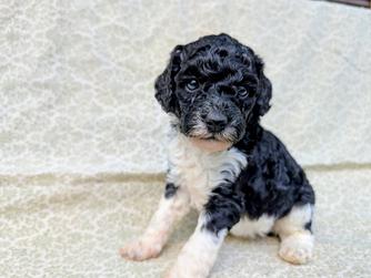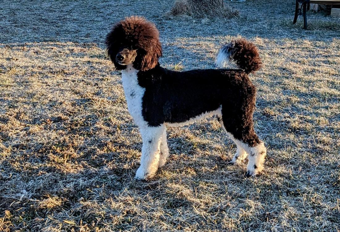 Beloved Benzie is a beauty to behold. I really like tuxedo marked poodles. They are a parti poodle who got blessed with an extra big "spot" that covers their body and looks like they are wearing a jacket over a white shirt. Benzie is our girl from Solace and Petosky. She is inquisitive and a rule follower--she doesn't test boundaries with us.