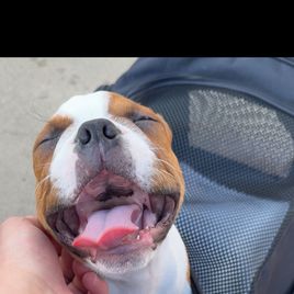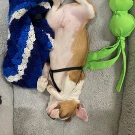 Proud bred by blue brindle mama. Sweet and calm temperament. She loves car rides and snuggles in bed. JHC and DM clear through parentage.