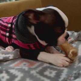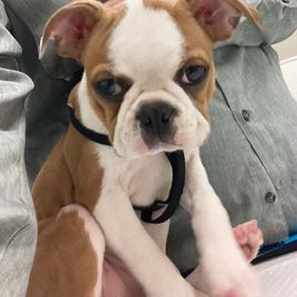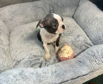 Lauren was so willing to communicate with videos or pictures, she made it a wonderful & easy experience on Good Dog. She drove several hours and delivered a wonderful ball of love with all of the proper paperwork and a puppy goody bag with him. I would highly recommend anyone looking for a Boston Terrier to check with them. They are well taken care of until they get to their forever home. Meet Henry William & hello to puppy pandemonium!