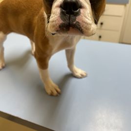 Red Fawn- Sweet and gentle temperament, he is great with children and other dogs. He is AKC registered and JHC and DM clear through parentage.