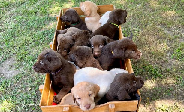 Our puppies include chocolate and yellow. Colors will vary depending on the parent dogs.