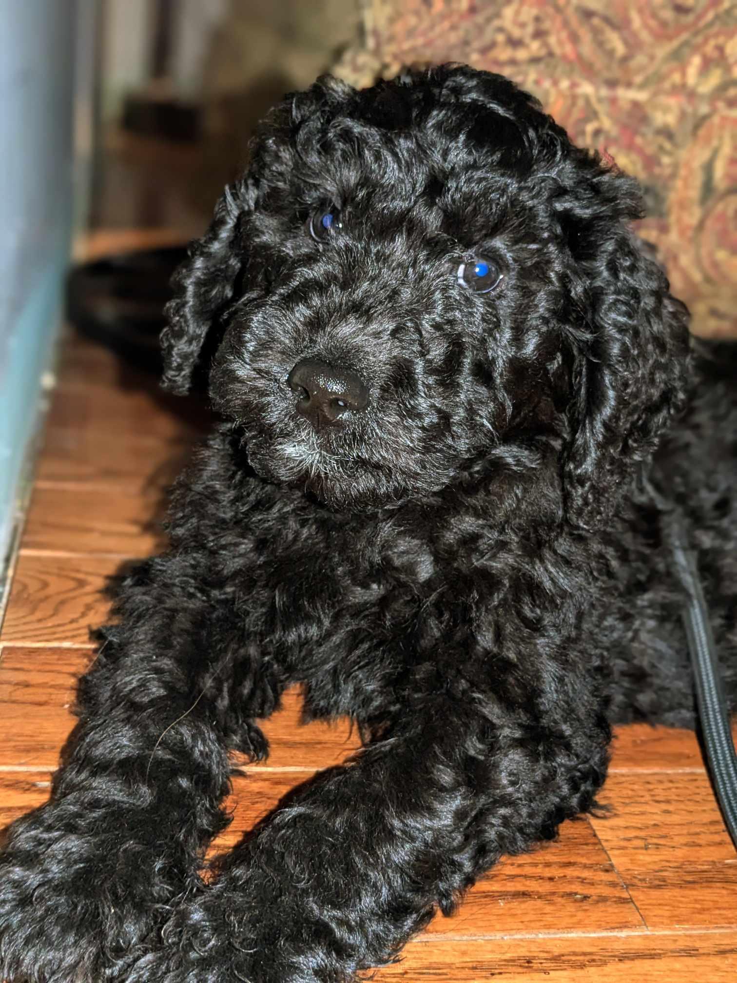 Evie is a female Newfypoo. Carefully selected as a great representative of her breed, Bryan & Laurel decided to make her part of their program. Bryan & Laurel has passed Good Dog’s screening process, which involved a review of their breeding practices, environment, and the mental and physical health of their dogs.