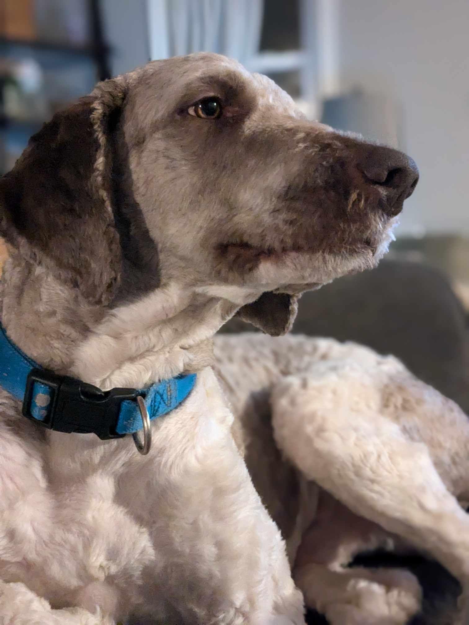 Loki is a chocolate and white parti F1b Newfypoo. He is my sidekick in life and loves all the snuggles, hugs, and company that he can get. He is never the one that causes ruckous, as he is chill and laid back.
