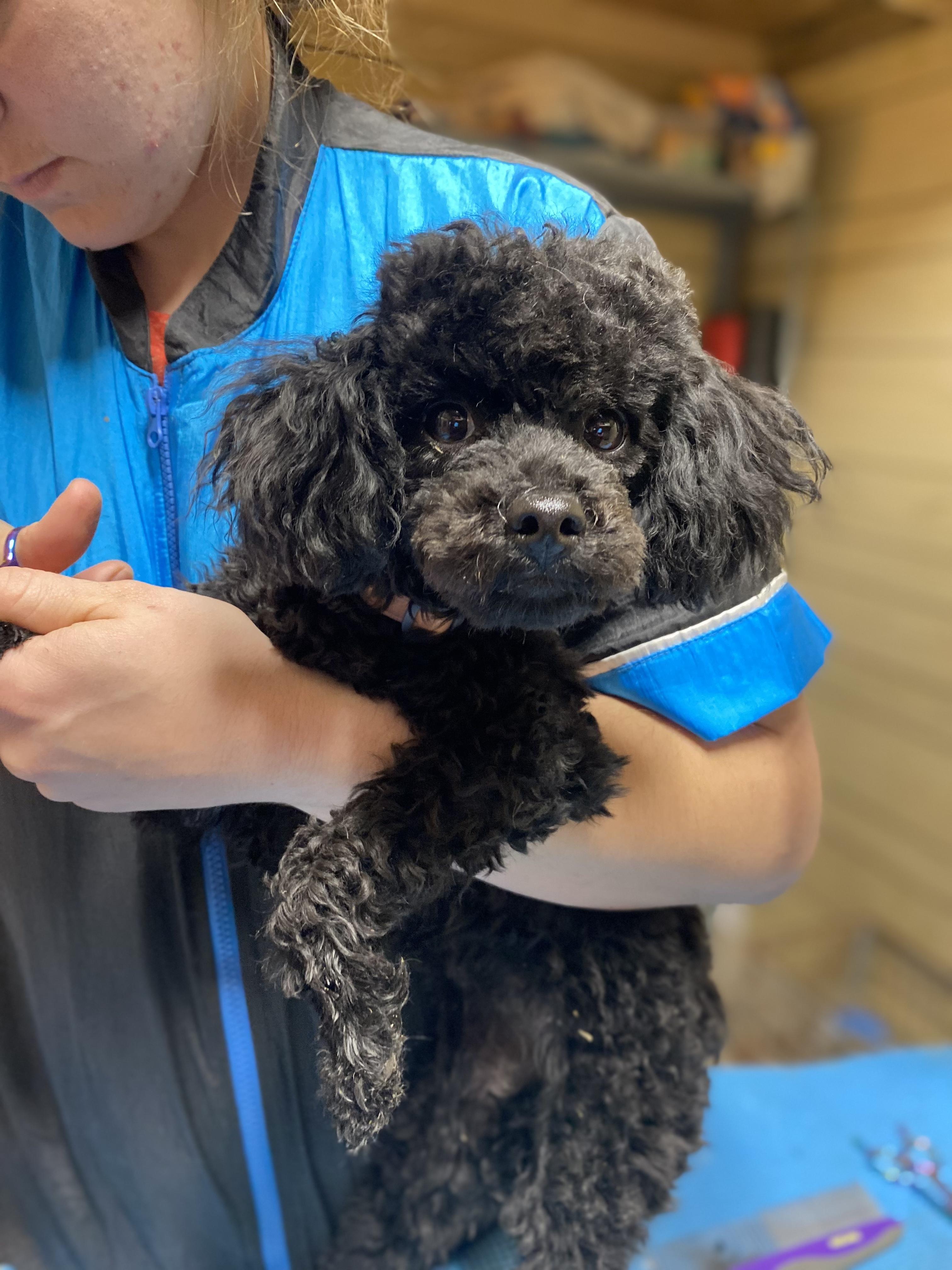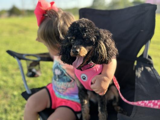 Maya is sweet girl who weighs 5-6 pounds. She is an AKC registered black phantom poodle.