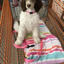 Rosie is a female Poodle. Carefully selected as a great representative of her breed, Melinda decided to make her part of their program. Melinda has passed Good Dog’s screening process, which involved a review of their breeding practices, environment, and the mental and physical health of their dogs.