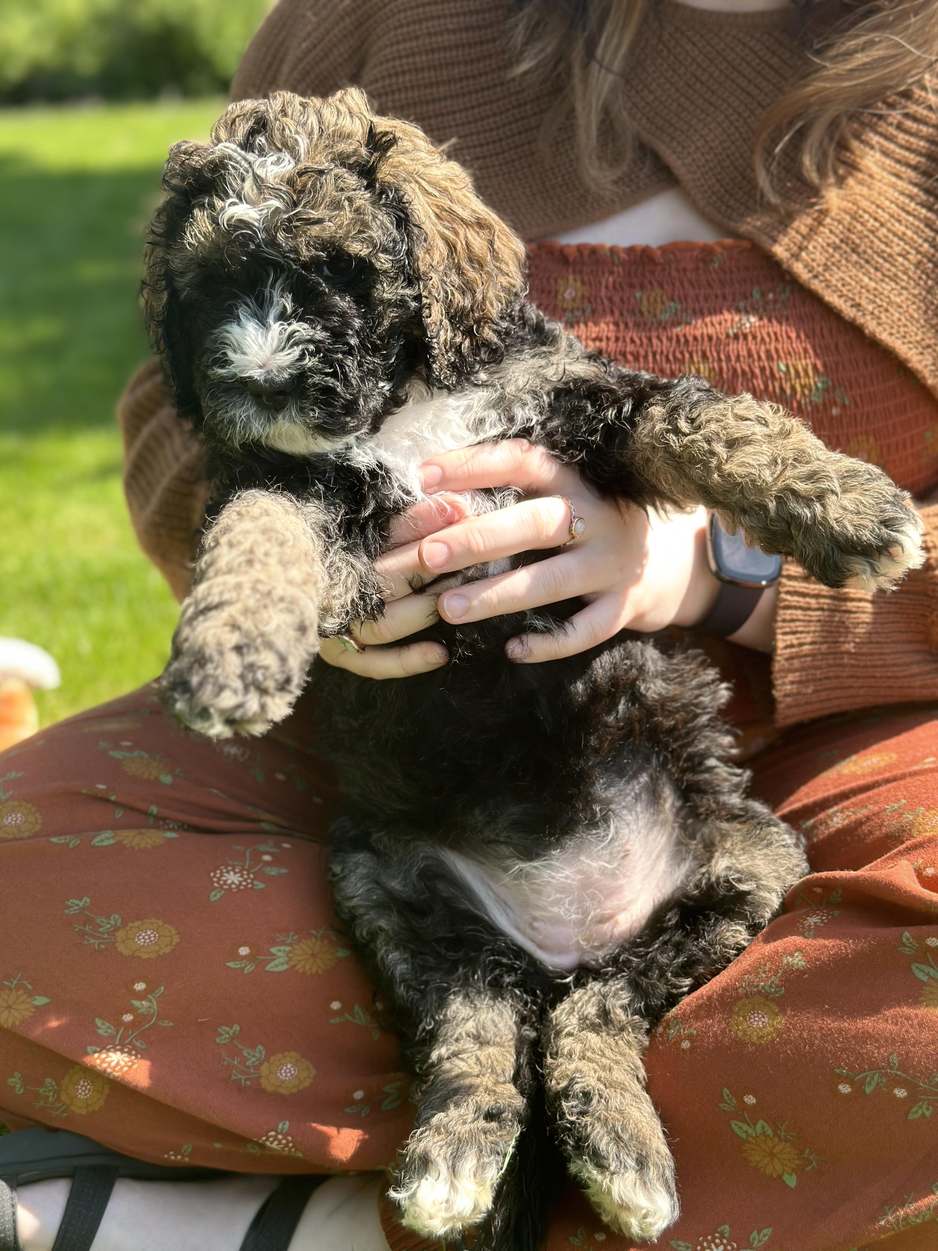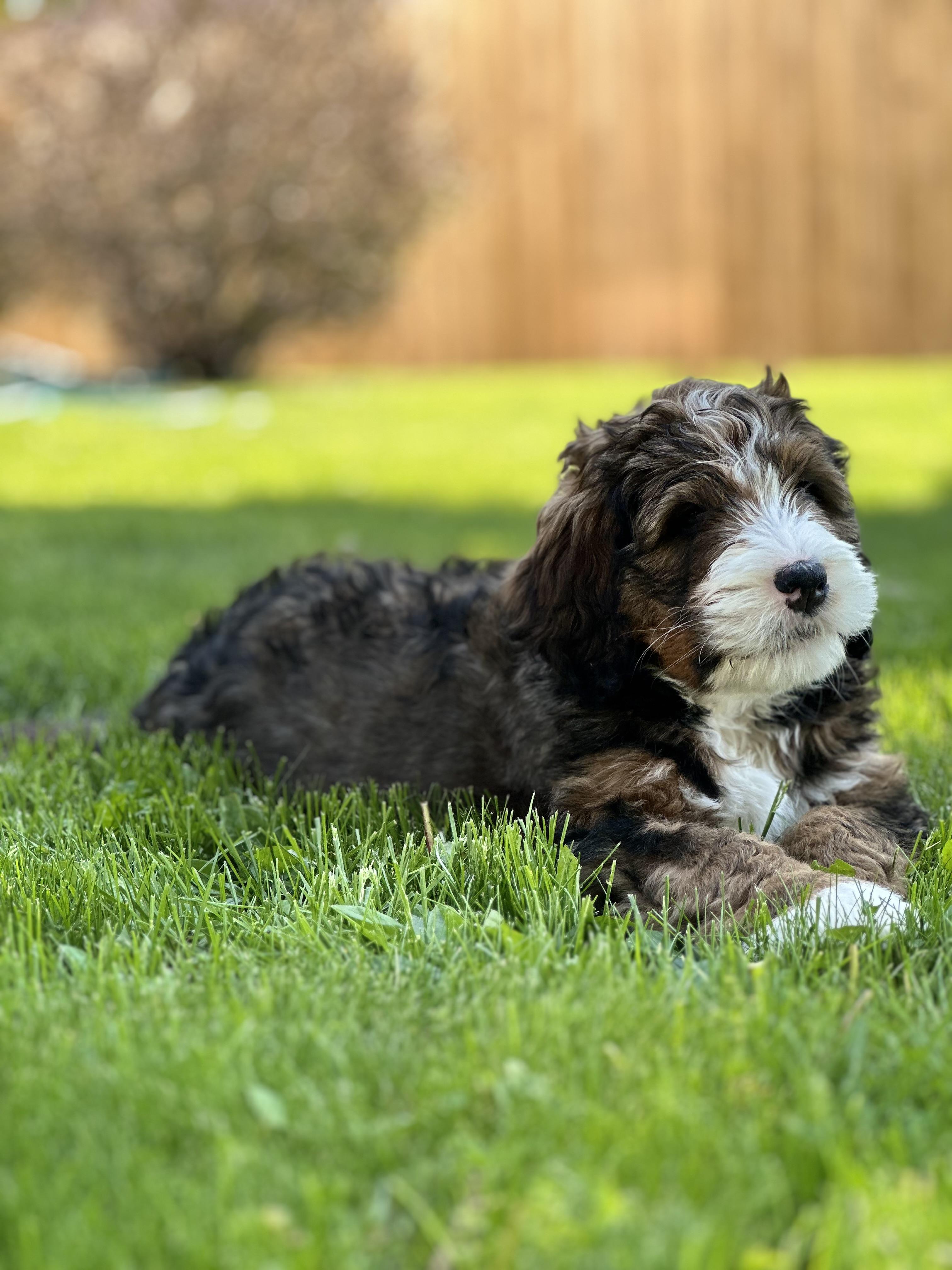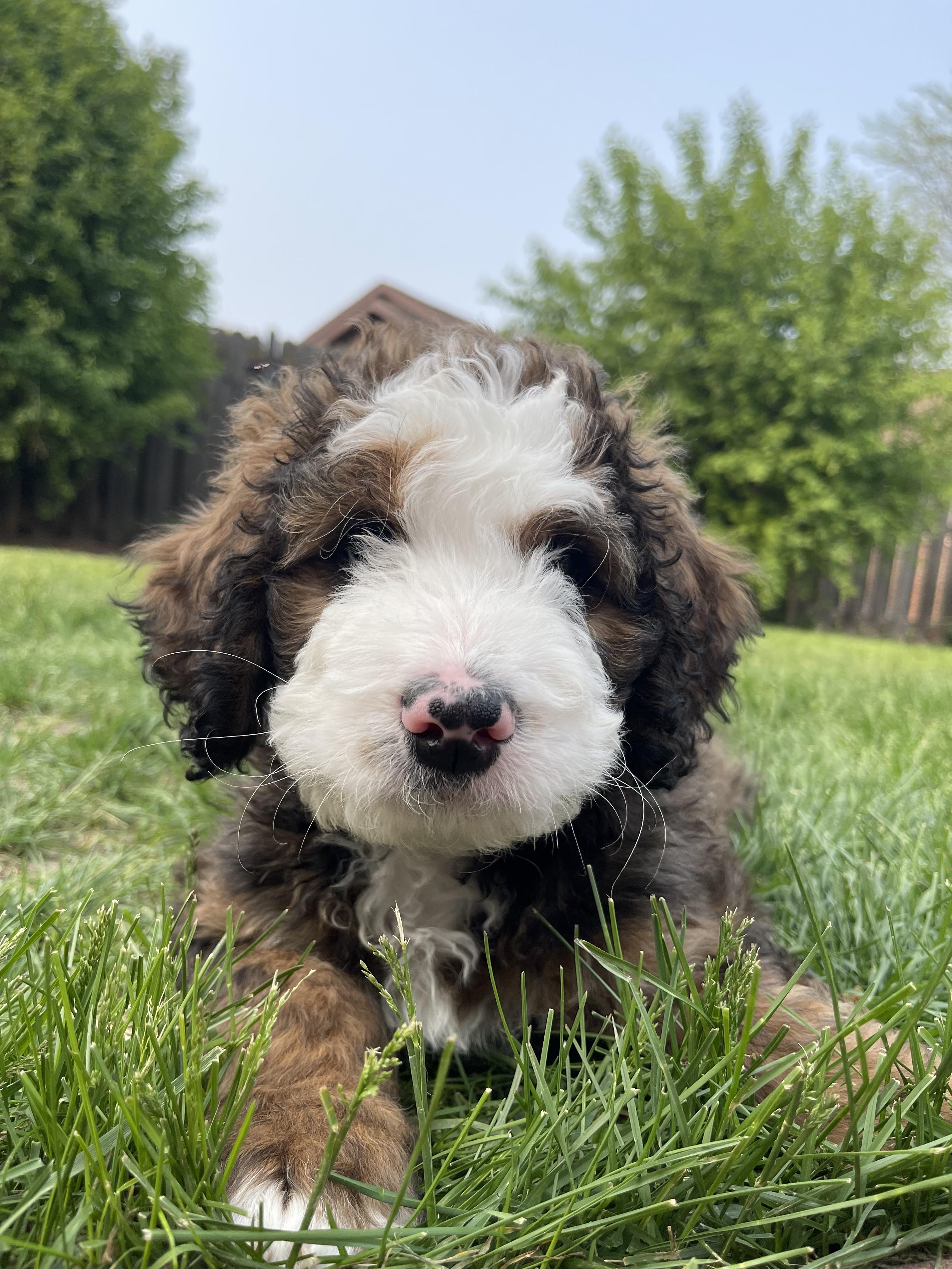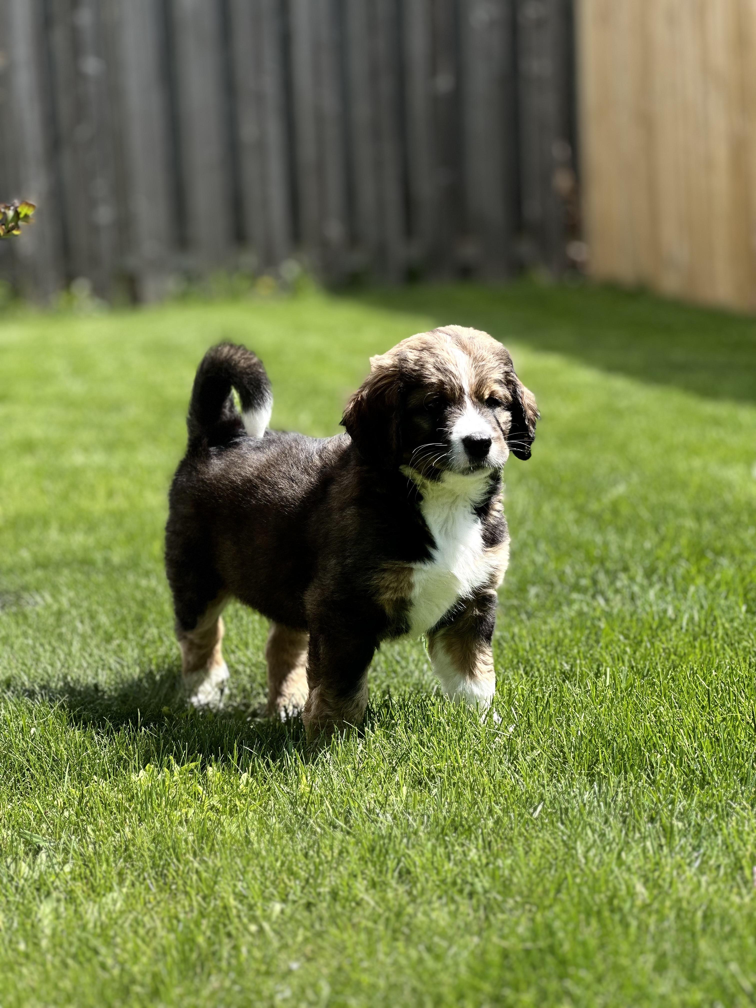 I grew up with a family that raised golden retrievers. I developed such a love and passion for raising and nurturing puppies. Unfortunately I also developed pretty bad allergies to dogs. I found the less they shed the less allergic I am, this made the bernedoodle bread an excellent choice! My cousin is a well established breeder in Missouri, we were fortunate to branch out to the Wisconsin area.