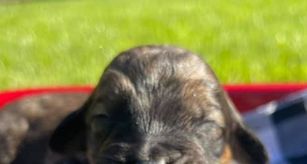 Our puppies are raised inside our home. This sets them up for success in becoming an excellent family pet. They are exposed to every day noises, interactions with people, other animals, and different textures/surfaces.