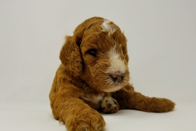 Our Goldendoodle puppies are red. Colors will vary depending on the parent dogs.