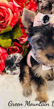 “Green Mountain Yorkie, Kristen, informative breeder from the beginning. Showed progress of all her puppies with pictures plus video's at play. Travel to pick up the puppy with follow up after arrived home. Thank you, Love Bella Rose