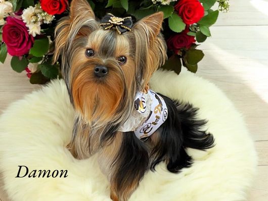 Damon is a male Yorkshire Terrier. Carefully selected as a great representative of his breed, Kristen decided to make him part of their program. Kristen has passed Good Dog’s screening process, which involved a review of their breeding practices, environment, and the mental and physical health of their dogs.