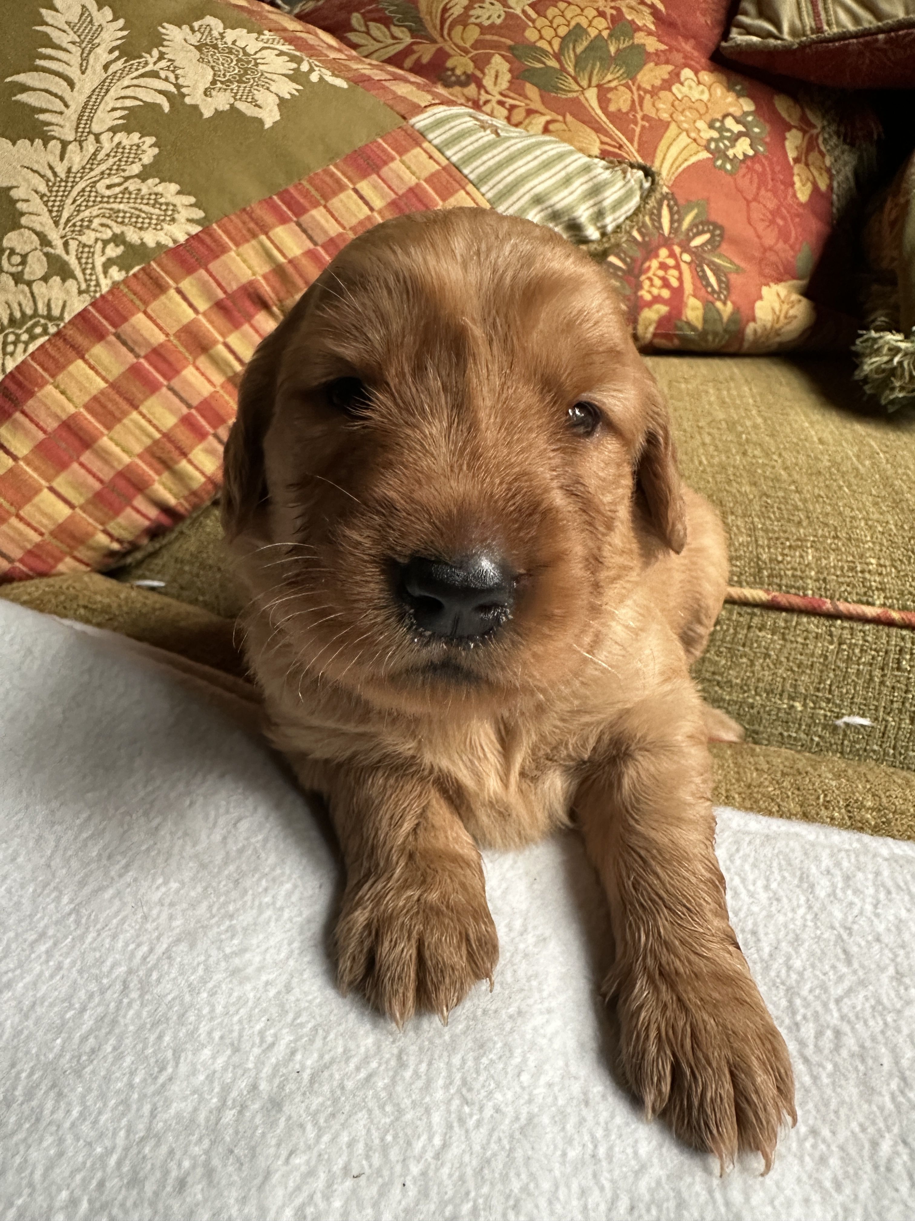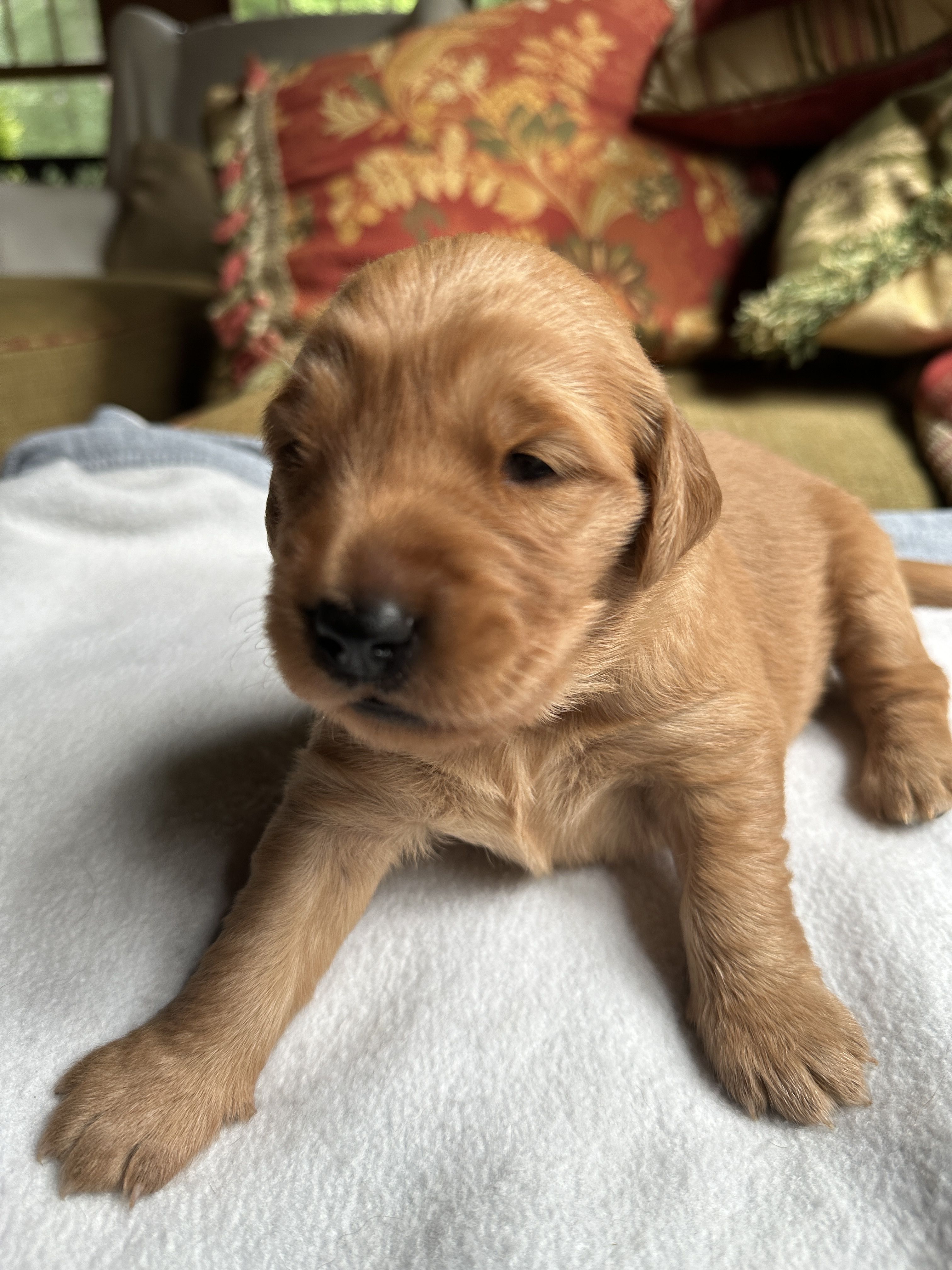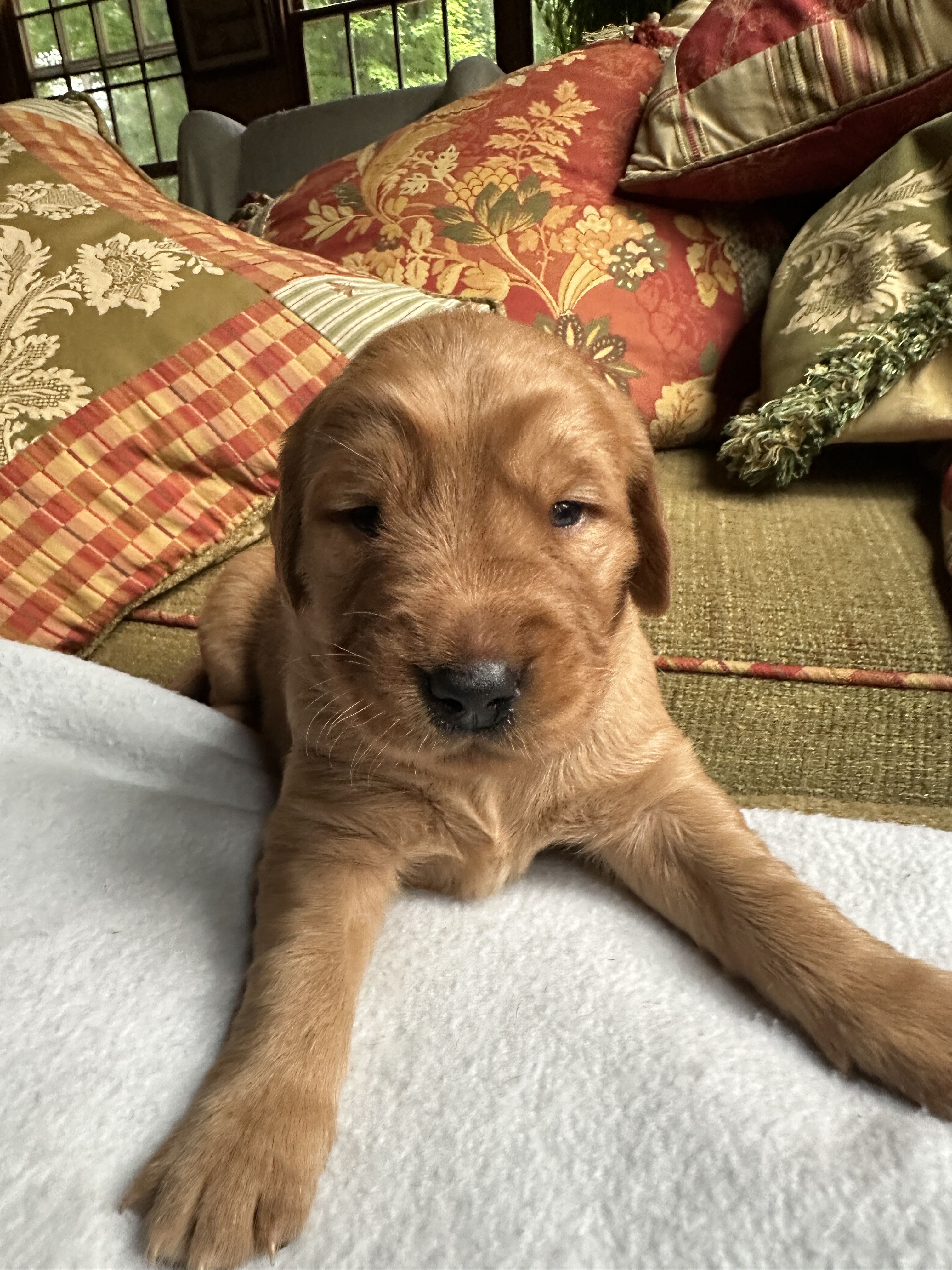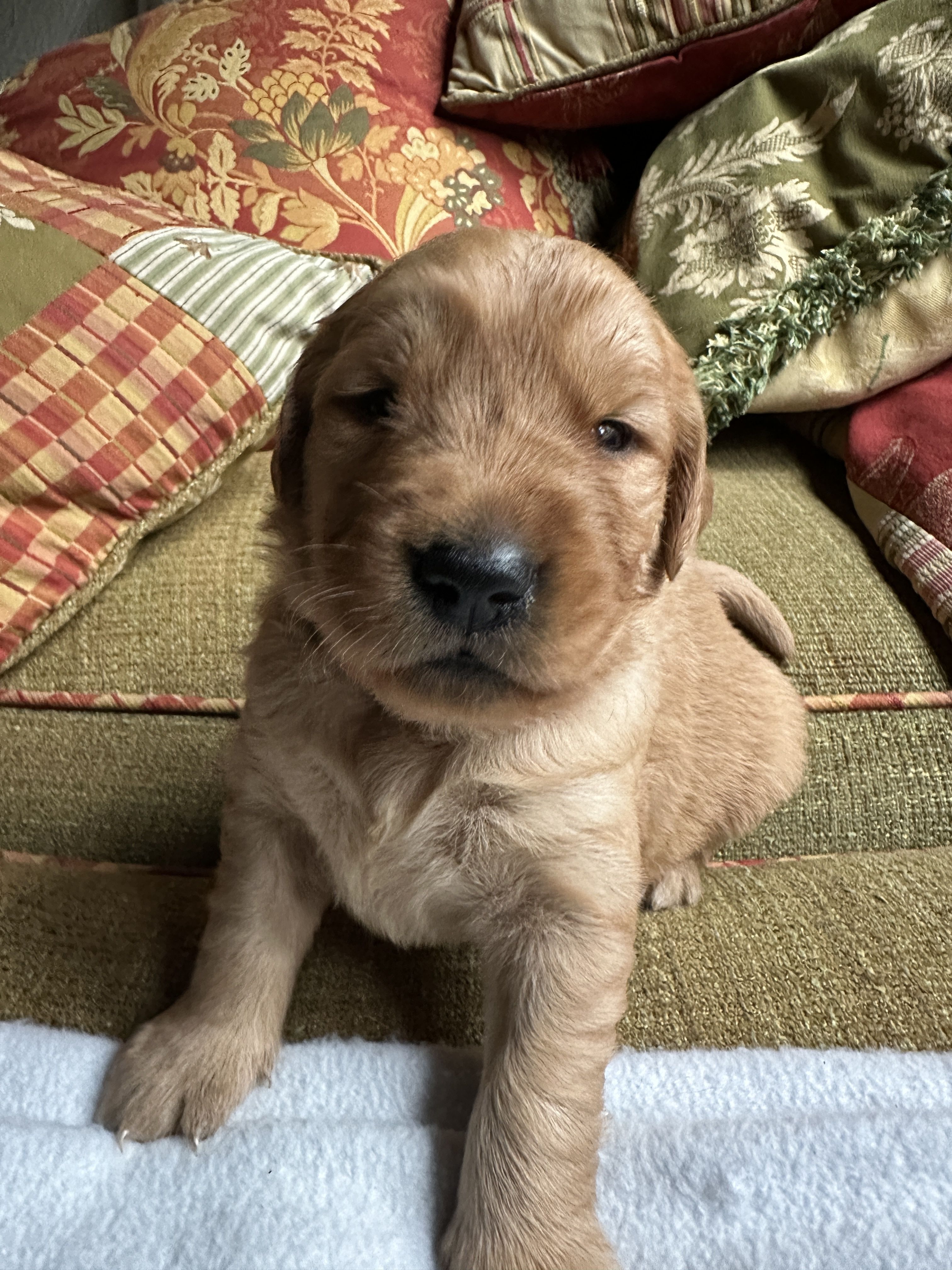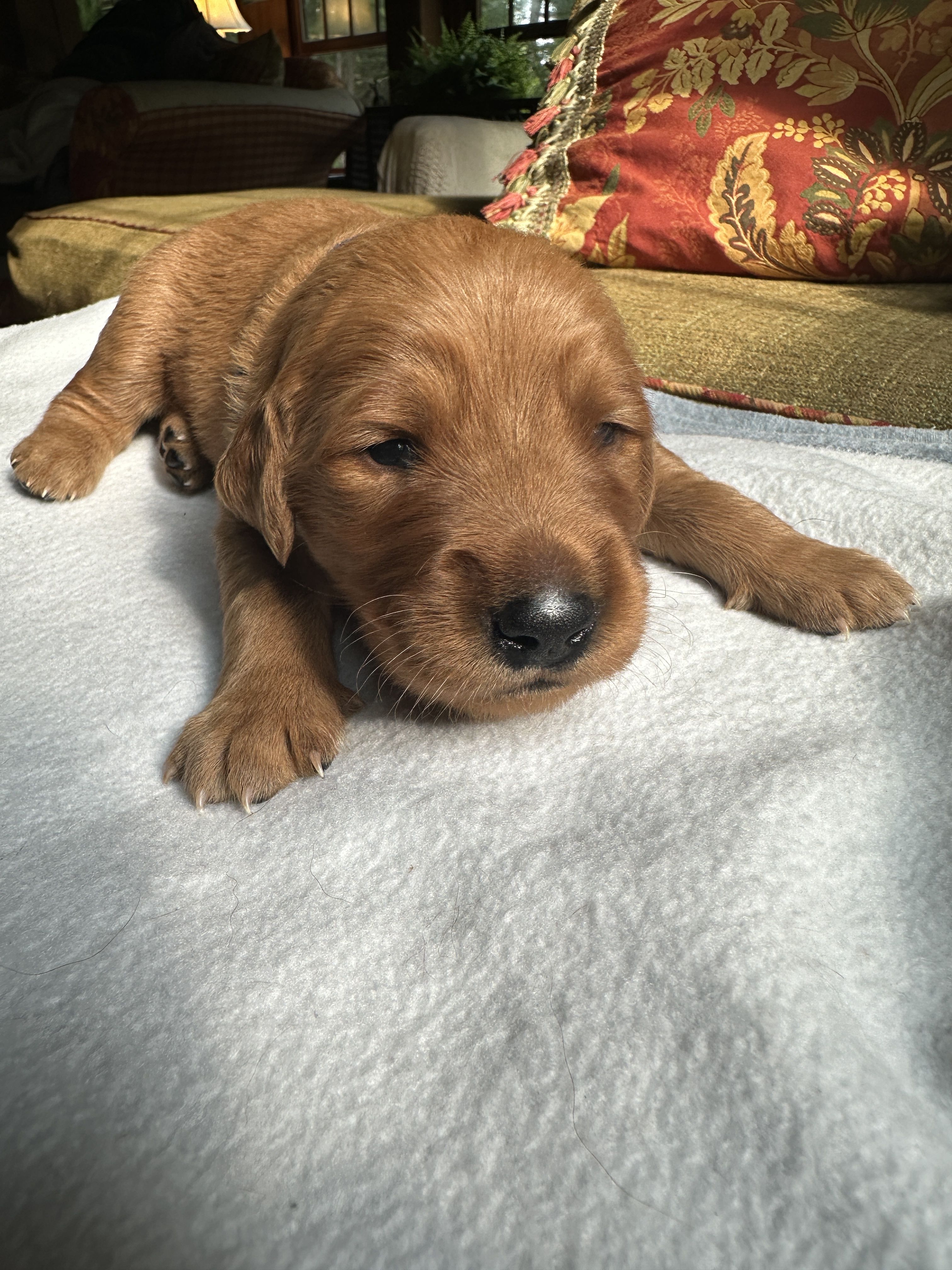 I'm Jeff O., the breeder behind Green Mountain Golden Retrievers located in Reading, VT. We love our red Goldens as pets. We focus on breeding beautiful, sound, well adjusted dogs. Our dogs are smart, easy to train, and love the outdoors. People who have gotten our dogs have used them as Emotional Support Animals, Field Trial competitors, Medical Alert dogs, and loving family pets.