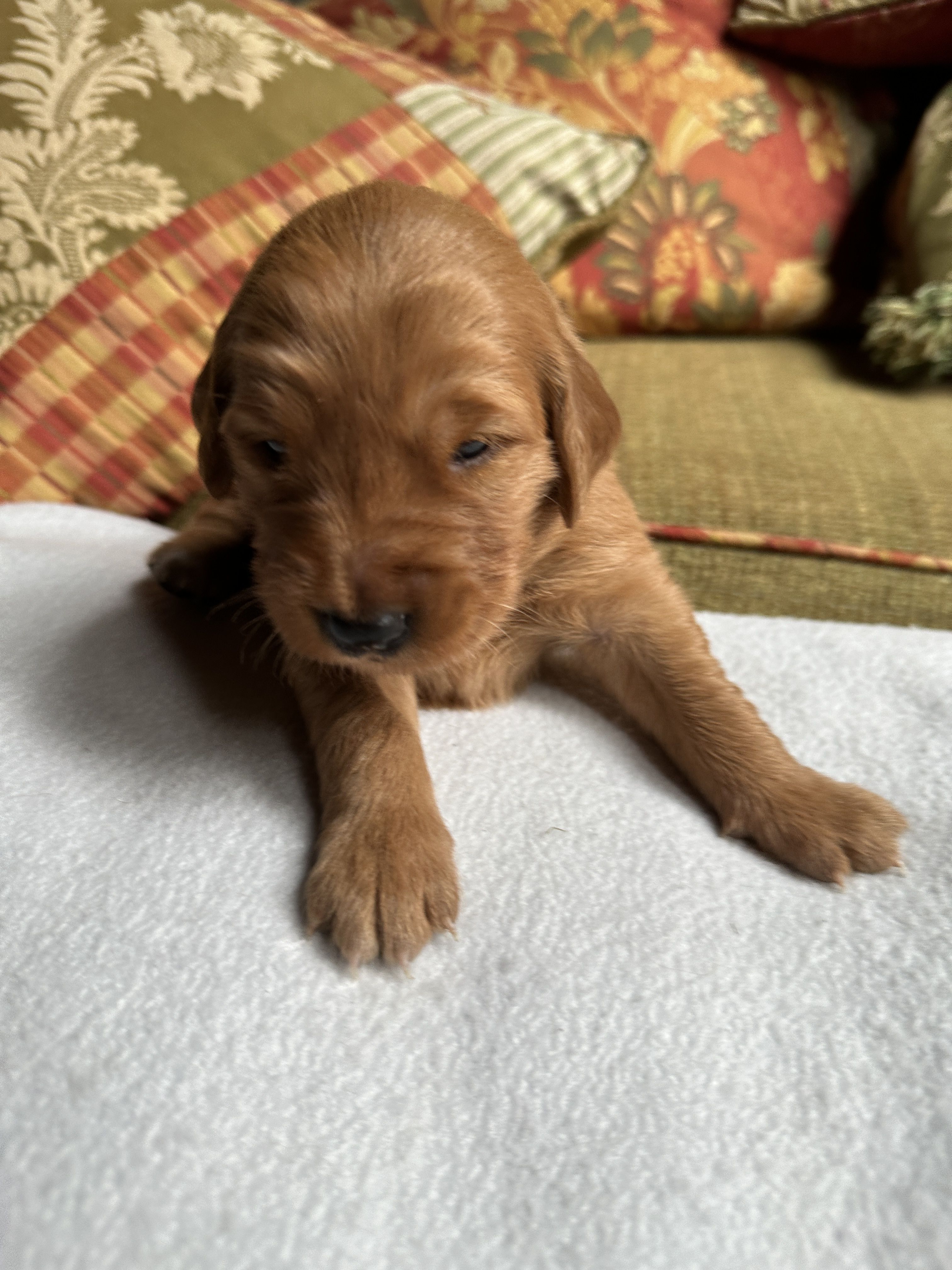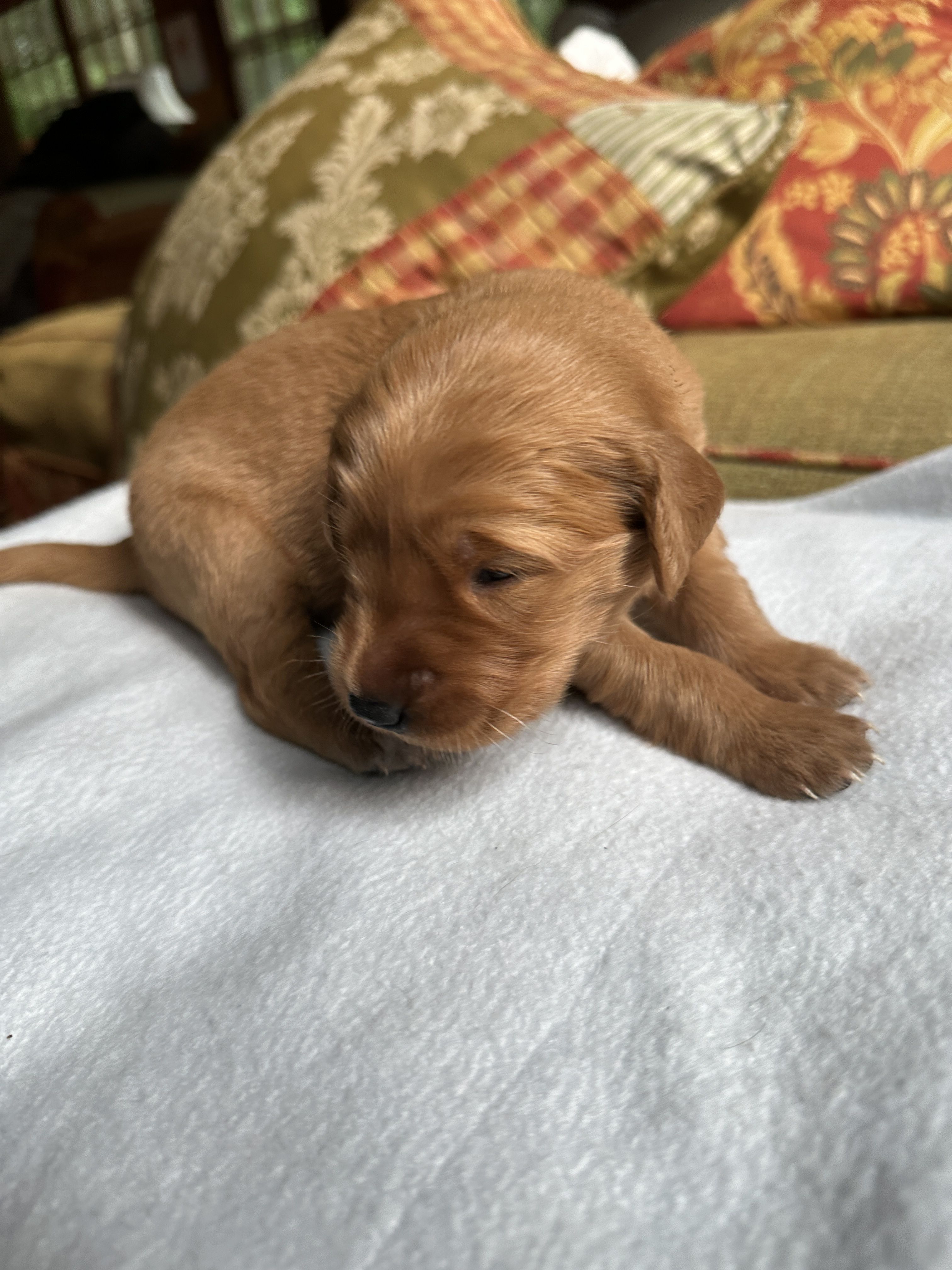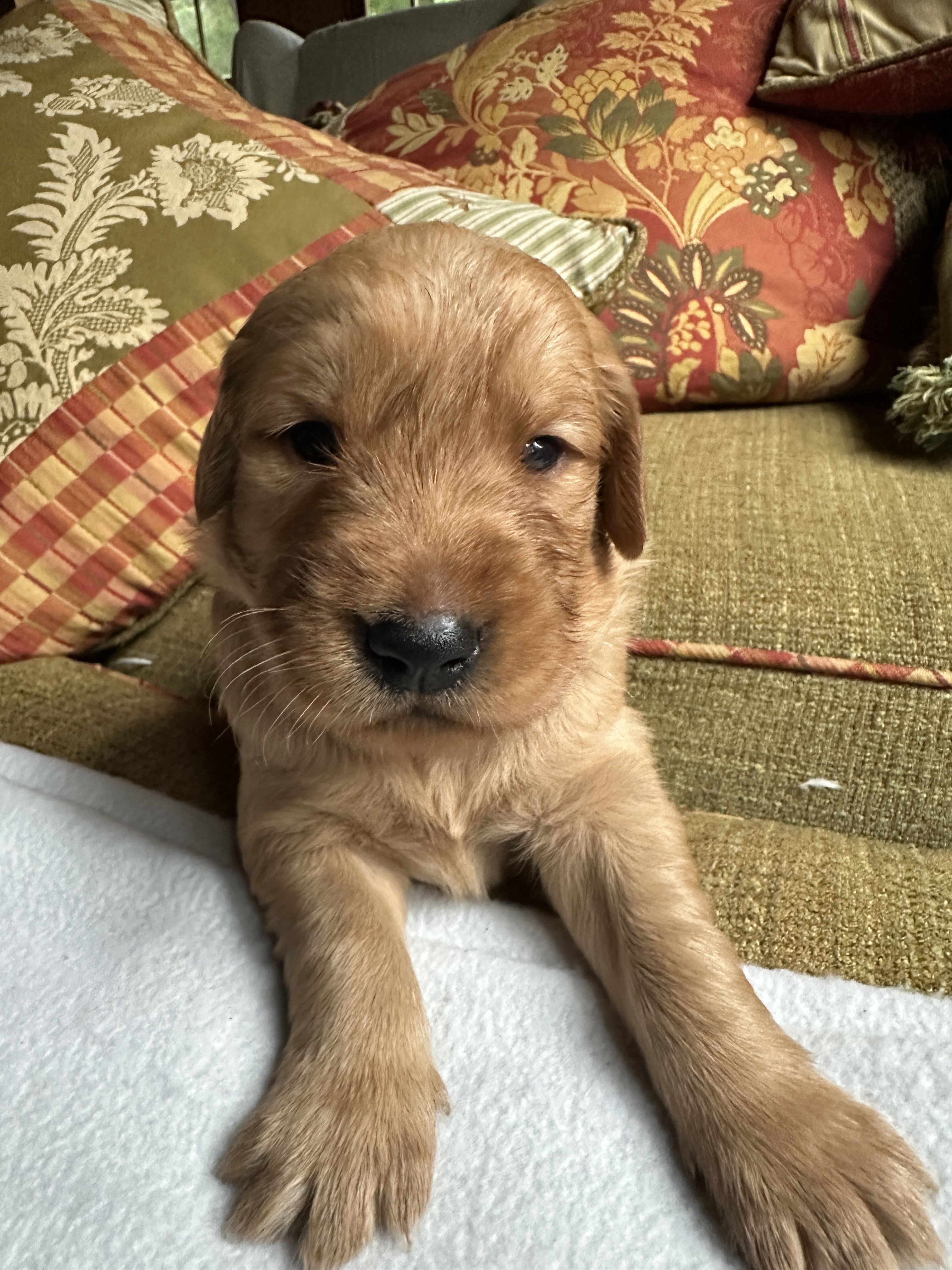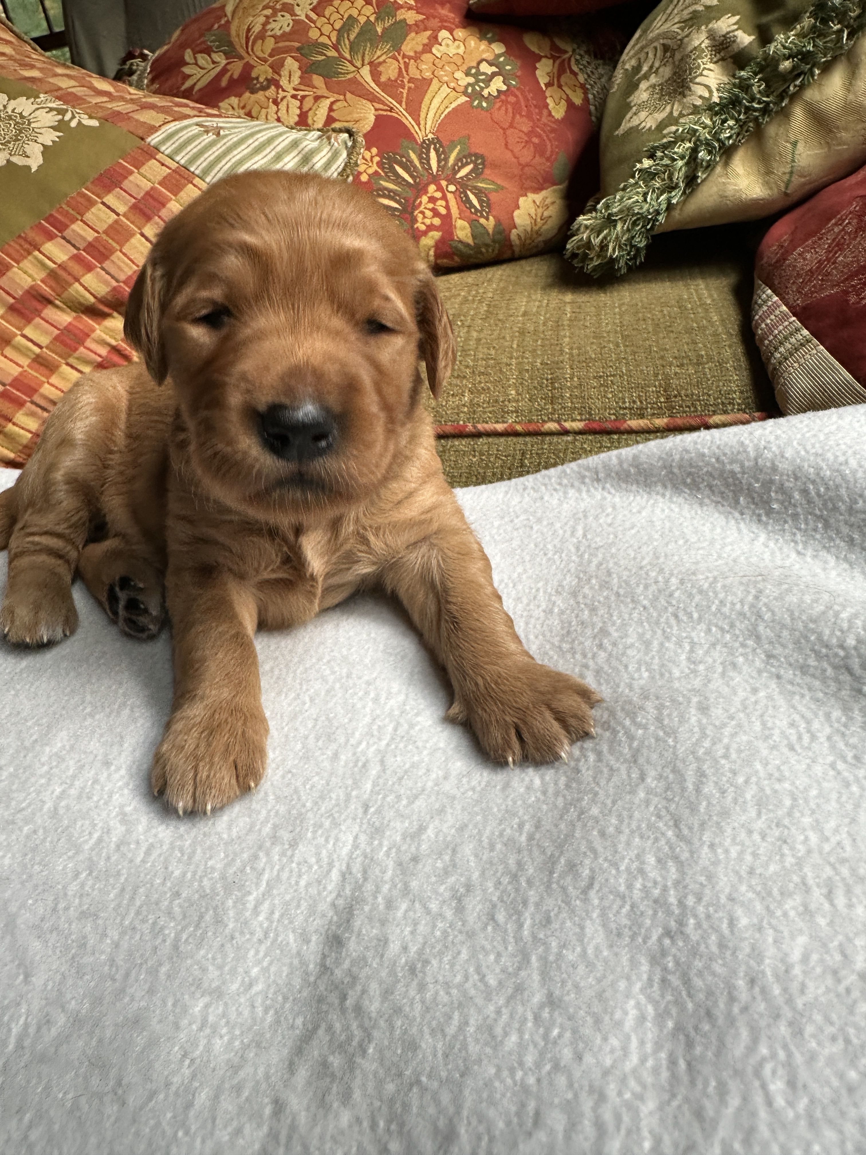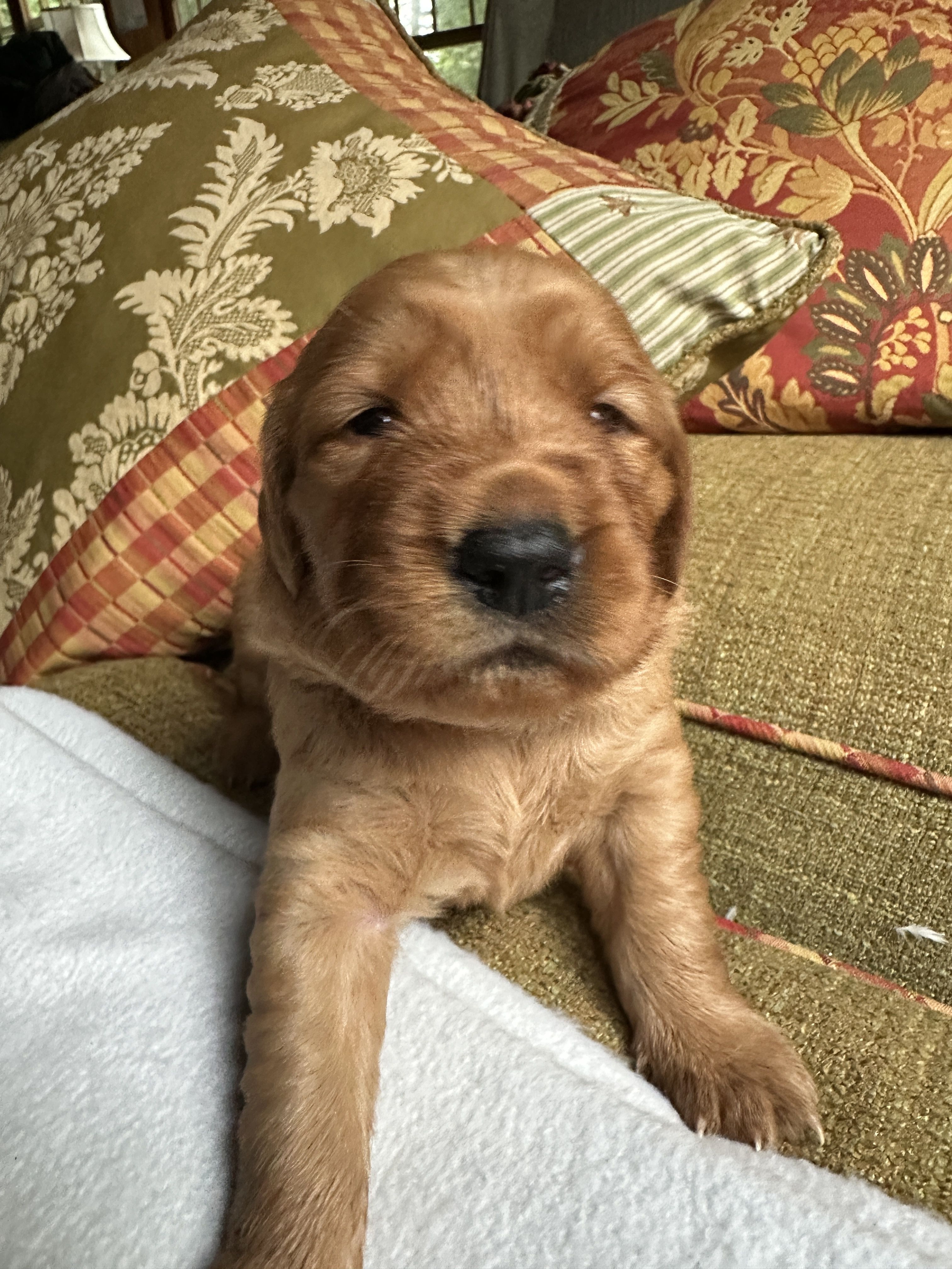 I'm Jeff O., the breeder behind Green Mountain Golden Retrievers located in Reading, VT. We love our red Goldens as pets. We focus on breeding beautiful, sound, well adjusted dogs. Our dogs are smart, easy to train, and love the outdoors. People who have gotten our dogs have used them as Emotional Support Animals, Field Trial competitors, Medical Alert dogs, and loving family pets.