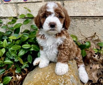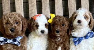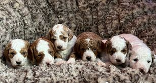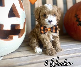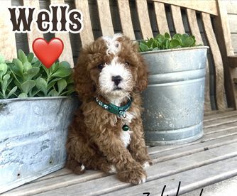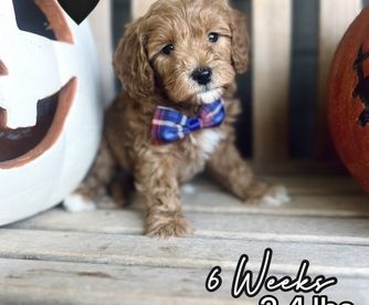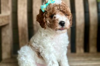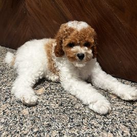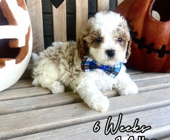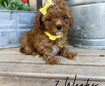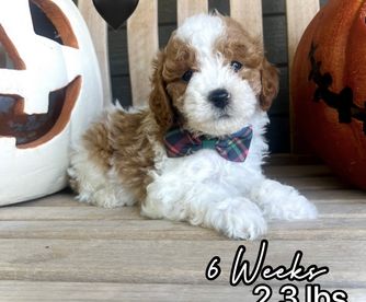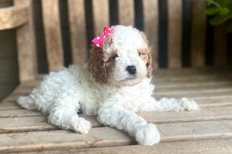 Our Goldendoodle puppies include red and parti. Cavapoo puppies include blenheim, white, and red. Colors will vary depending on the parent dogs.