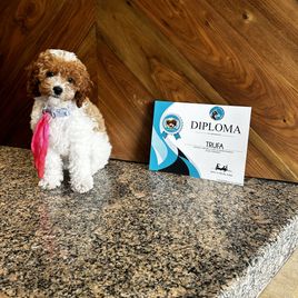Truly is a female Goldendoodle. Carefully selected as a great representative of her breed, Shelley decided to make her part of their program. Shelley has passed Good Dog’s screening process, which involved a review of their breeding practices, environment, and the mental and physical health of their dogs.