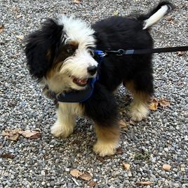 Carla is a female Bernedoodle. Carefully selected as a great representative of her breed, Levi decided to make her part of their program. Levi has passed Good Dog’s screening process, which involved a review of their breeding practices, environment, and the mental and physical health of their dogs.
