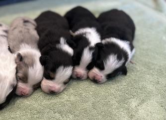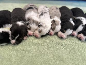 Our Miniature American Shepherd puppies include black, red merle, blue merle, and red. Australian Shepherd puppies include black, red merle, blue merle, and red. Colors will vary depending on the parent dogs.