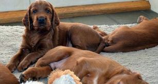 We are premier breeders of Irish Setters. We do not breed our dogs unless they are healthy, have great drives, and are excellent representations of their breed's standard. We strive for quality and excellence with everything that we do. Holding ourselves to high standards is paramount to the well-being of our dogs and to the integrity of our program. We pride ourselves on helping all of our clients find the right fit for their needs and lifestyles. If you are looking for the perfect, quality companion, look no further!