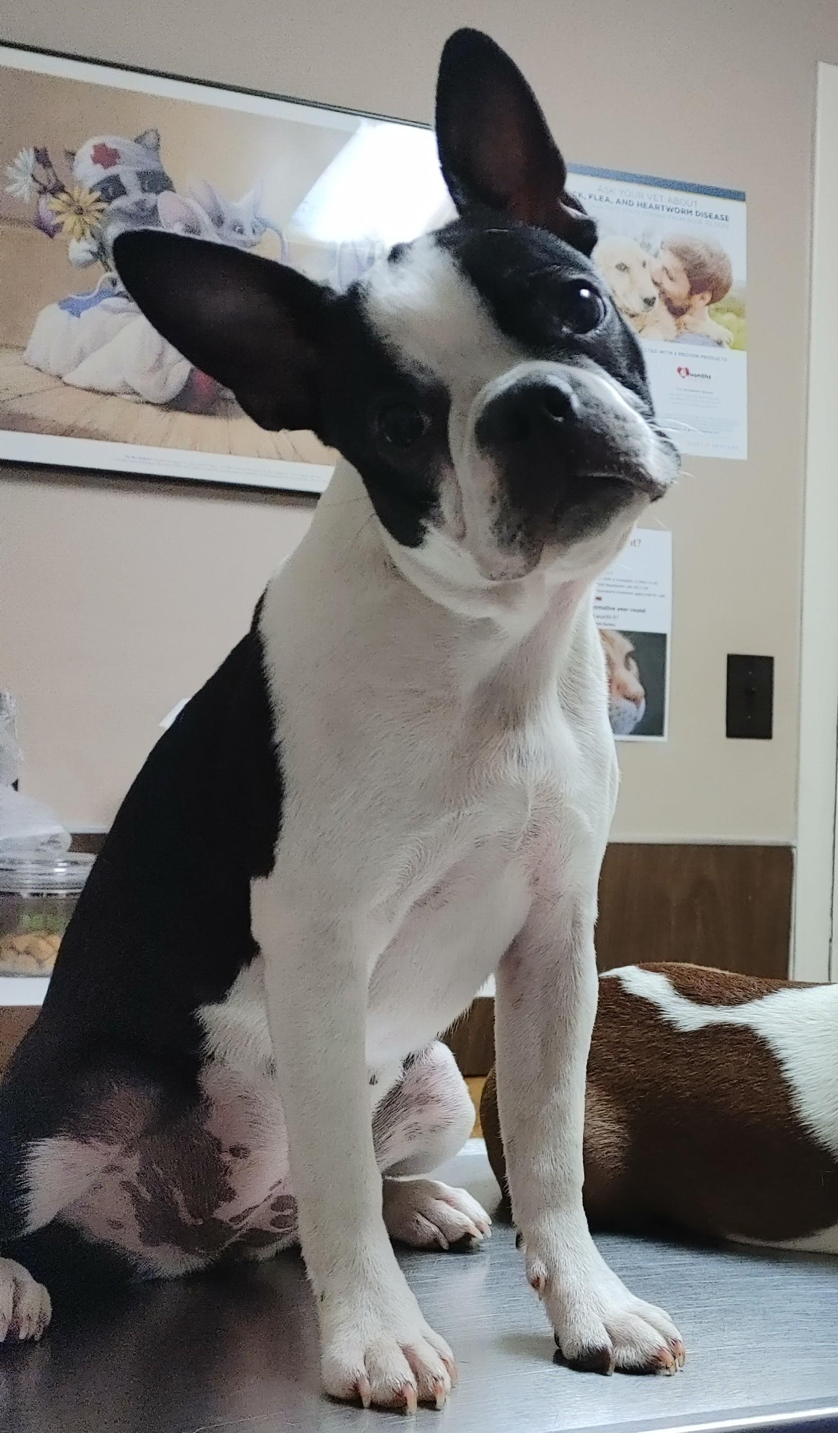 Juniper is a female Boston Terrier. Carefully selected as a great representative of her breed, Crystal decided to make her part of their program. Crystal has passed Good Dog’s screening process, which involved a review of their breeding practices, environment, and the mental and physical health of their dogs.