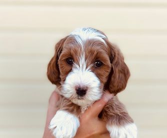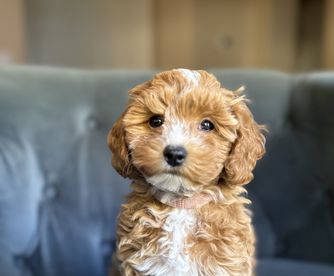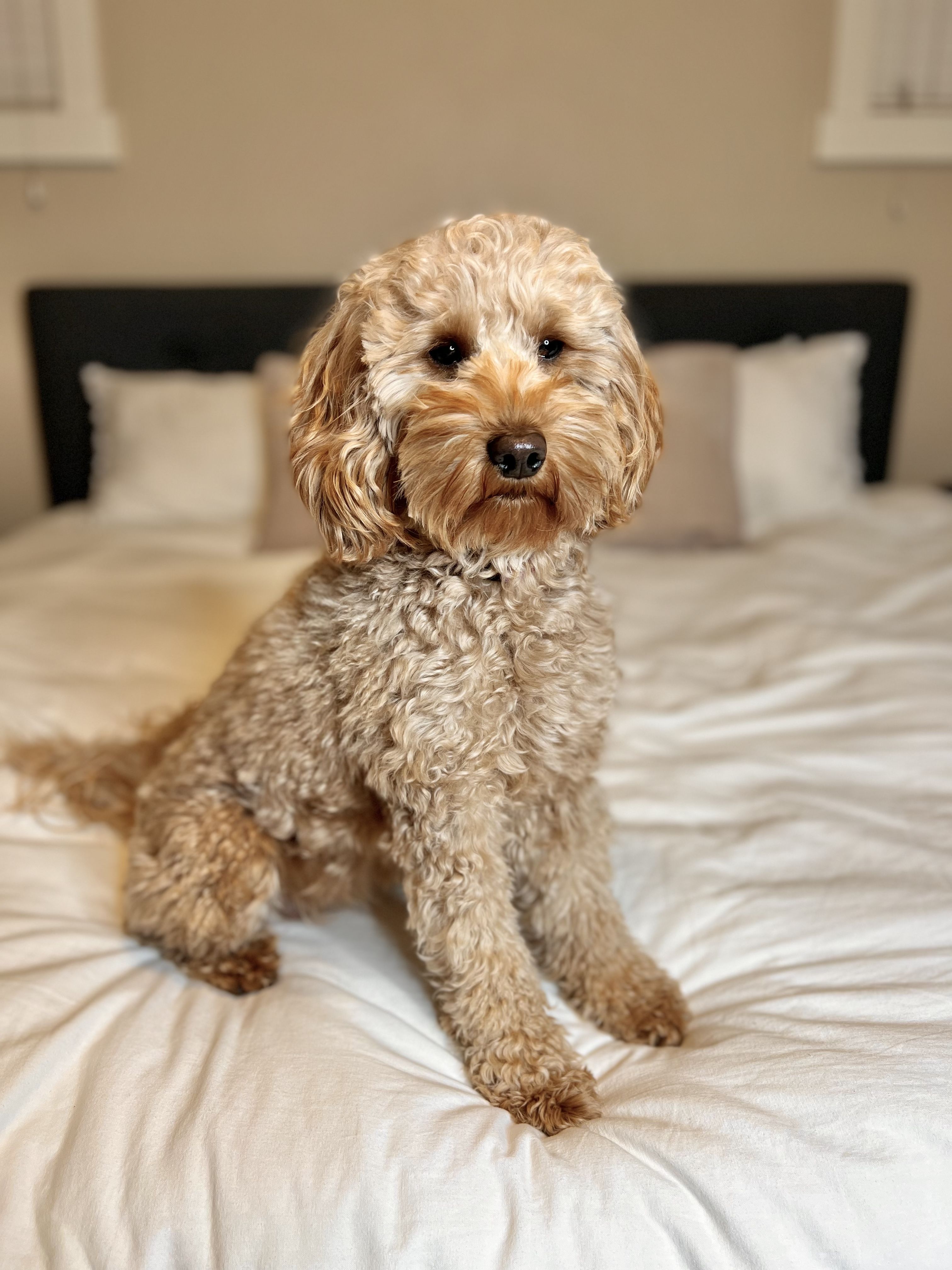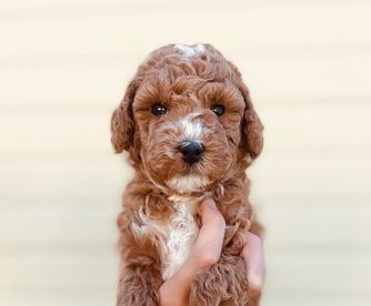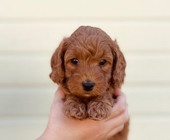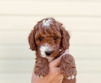 Lucy is a F1B red that is Fully Furnished. She has a wavy coat that is silky soft and non shedding.