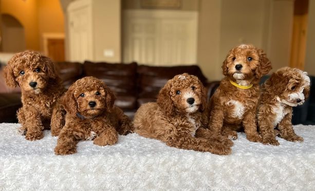 Our puppies include cream and red. Colors will vary depending on the parent dogs.
