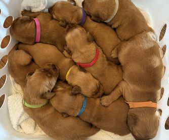 Our puppies are dark golden. Colors will vary depending on the parent dogs.