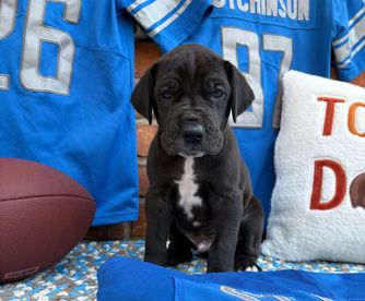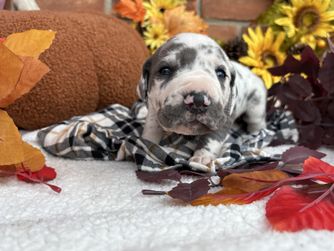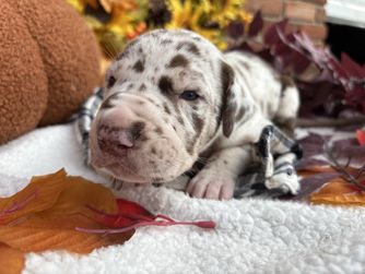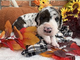 I'm Reegan G., the breeder behind Green’s Great Danes located in Grand Blanc, MI. We focus on raising healthy, happy, loving puppies. Our pups are socialized with other dogs, cats, young children, as well as receiving early neurological stimulation. Our babies will begin potty, crate, and basic obedience training to get them prepared for your loving home. Feel free to contact us.