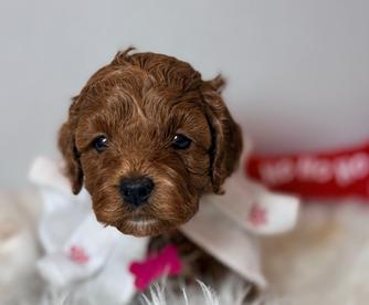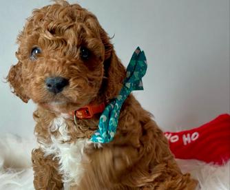 Our Cockapoo puppies include red and white, red, and cream. Assorted Doodle Crosses puppies include merle, red, parti, cream, chocolate, and apricot. Bernedoodle puppies include red, sable, and tri-color. Colors will vary depending on the parent dogs.