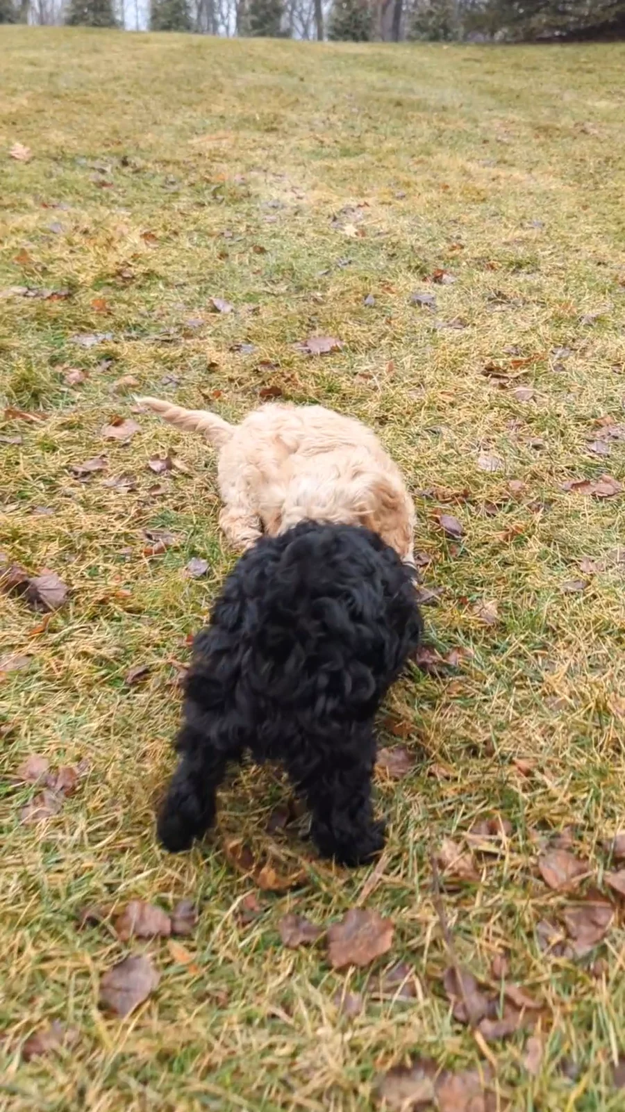 Final potty break before overnight in their crates