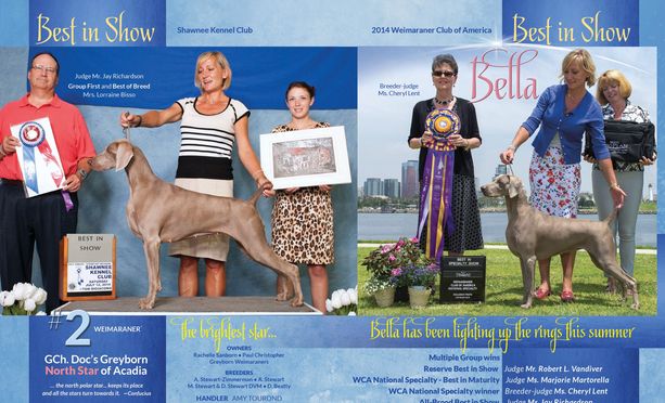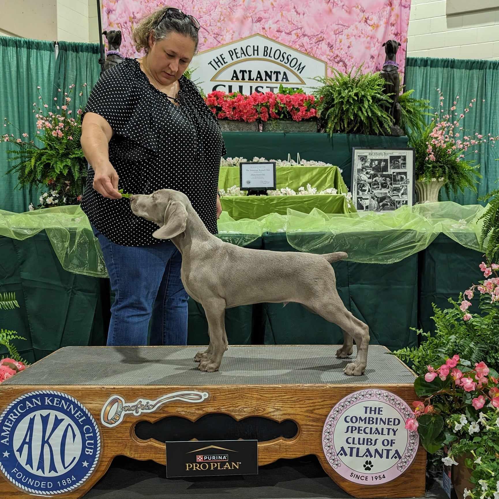 Weimaraners are highly intelligent, high energy,medium sized gray dogs that we have cherished and loved for 50 plus years, Our goal in breeding Weimaraners is to preserve the breed and focus on Temperment,Health and Beauty. We want to breed and present the "whole" package of perfection according to the AKC Standard and The Weimaraner Club of America of which I have been a member for 20 plus years.