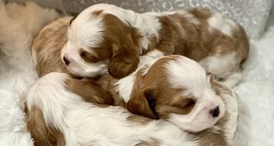 Our Cavapoo puppies include blenheim and apricot. Pembroke Welsh Corgi puppies include red, sable, white and red, and black and tan. Cavalier King Charles Spaniel puppies include blenheim and ruby. Colors will vary depending on the parent dogs.