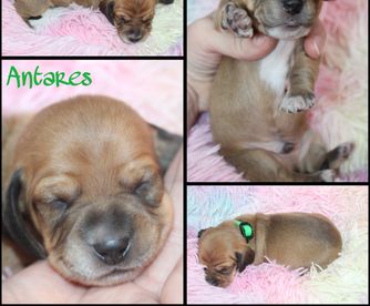 Jasmine is a female Dachshund. Carefully selected as a great representative of her breed, Olivia decided to make her part of their program. Olivia has passed Good Dog’s screening process, which involved a review of their breeding practices, environment, and the mental and physical health of their dogs.