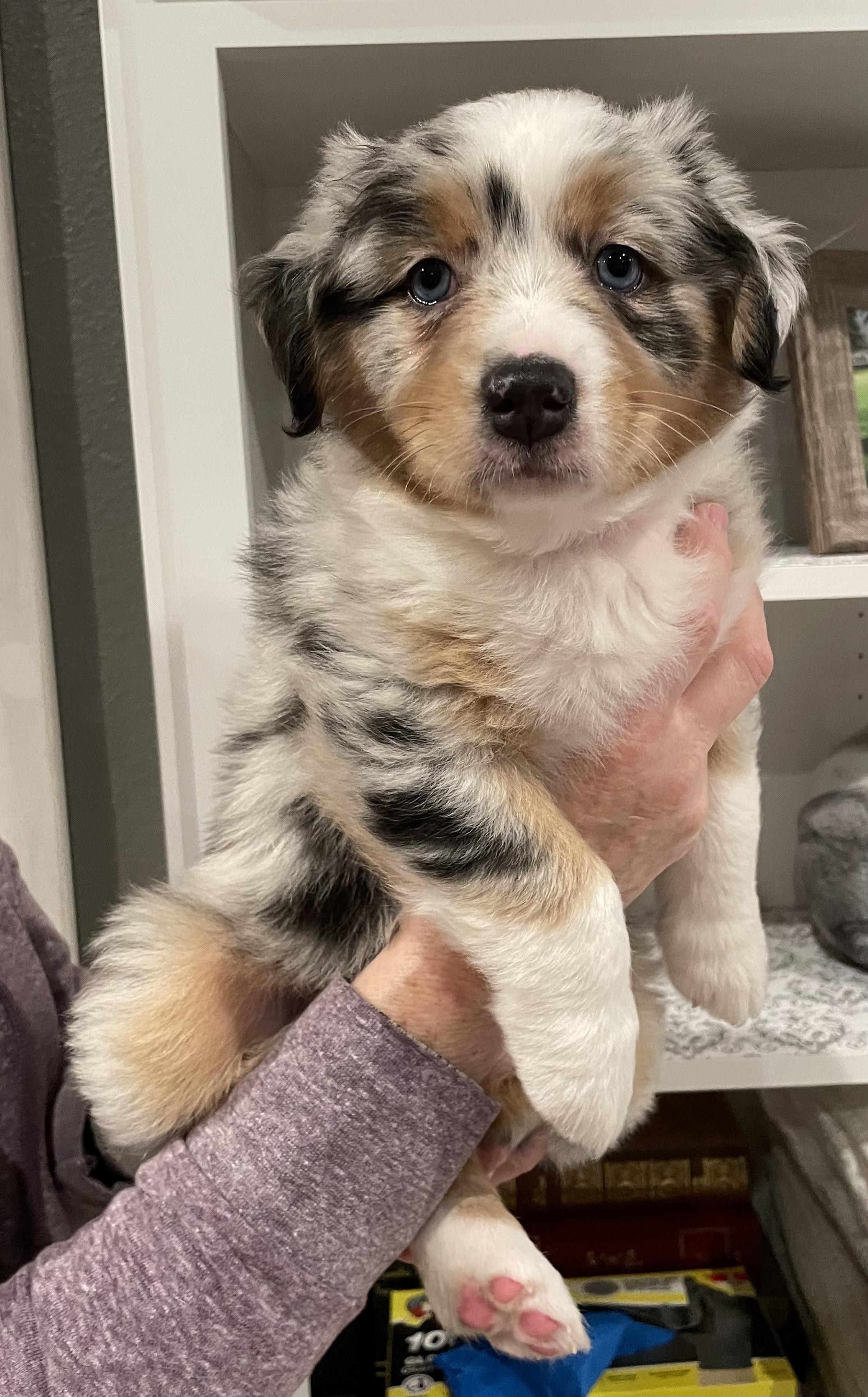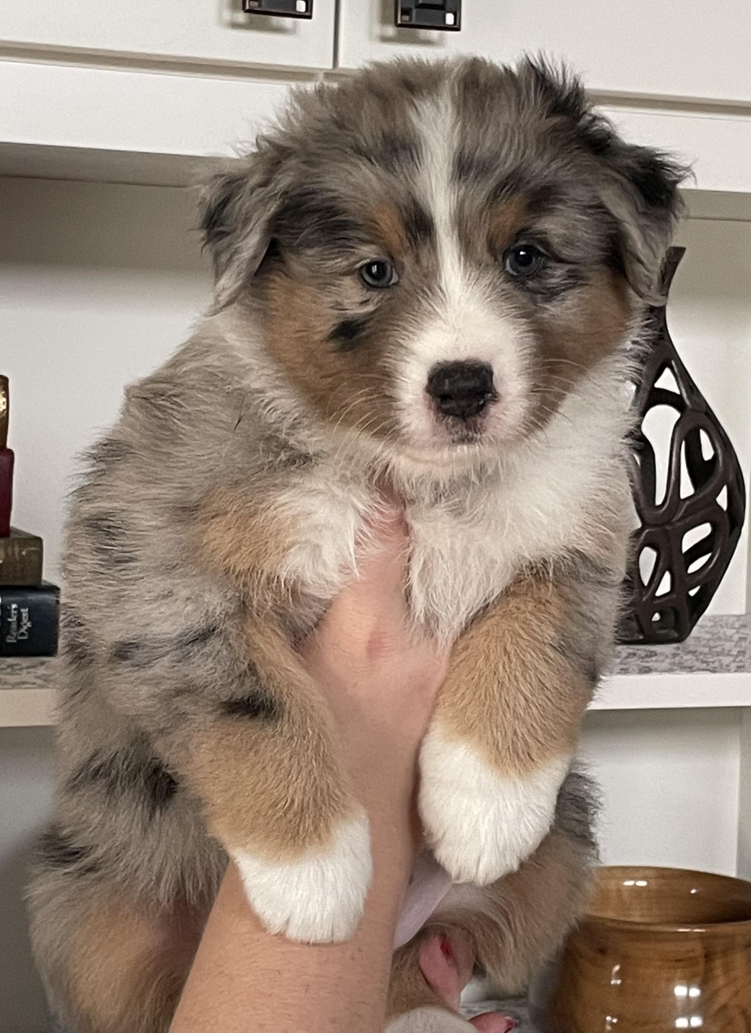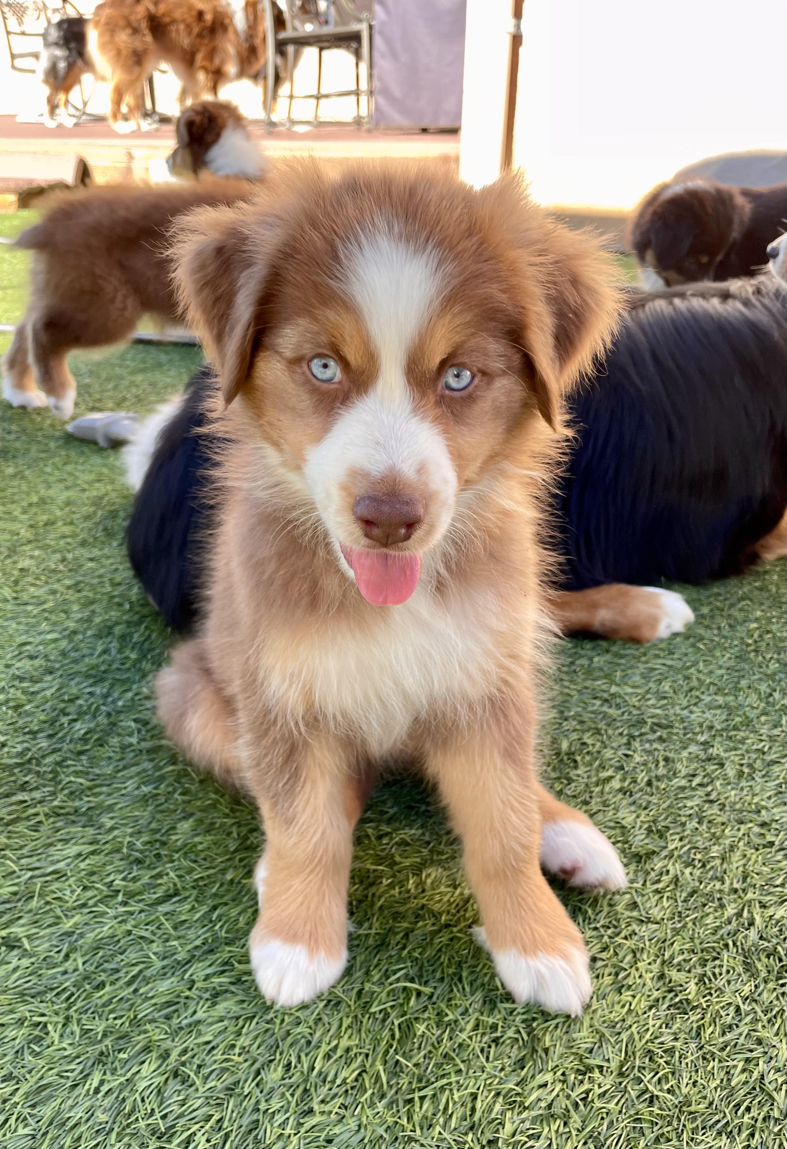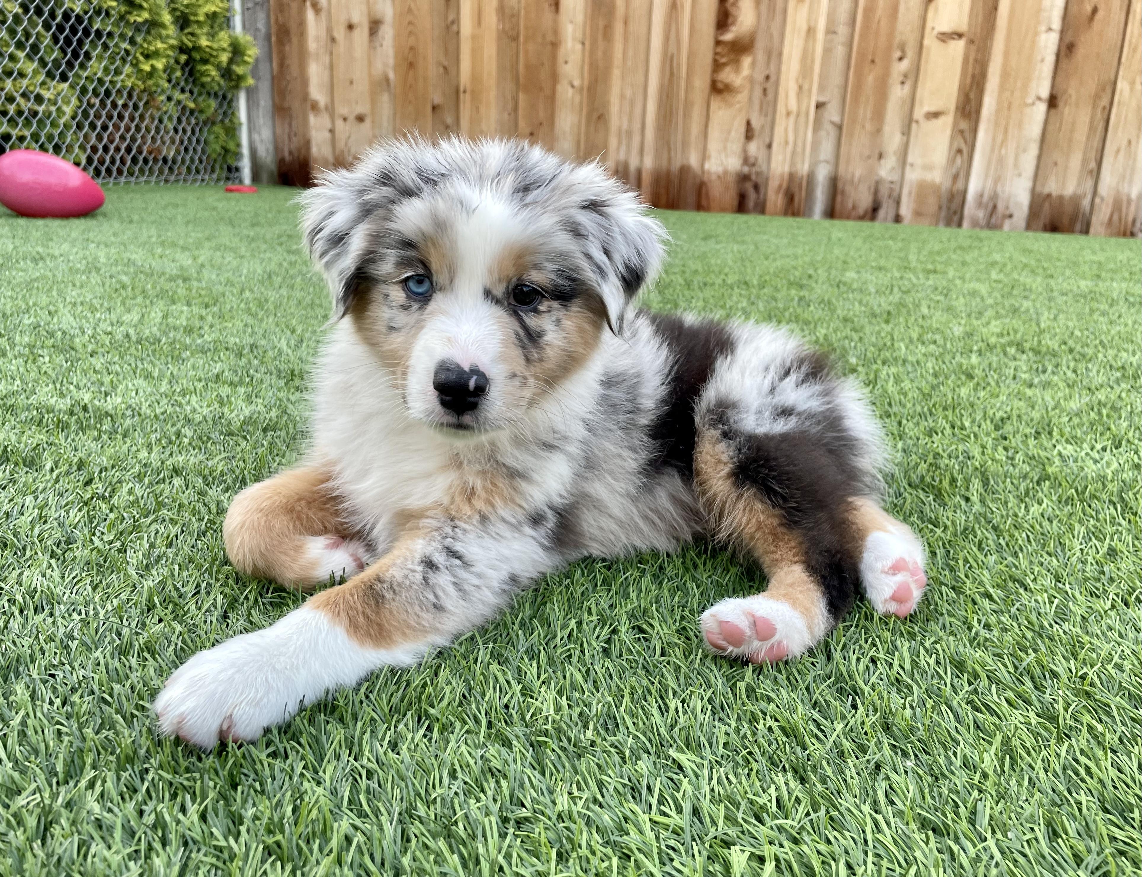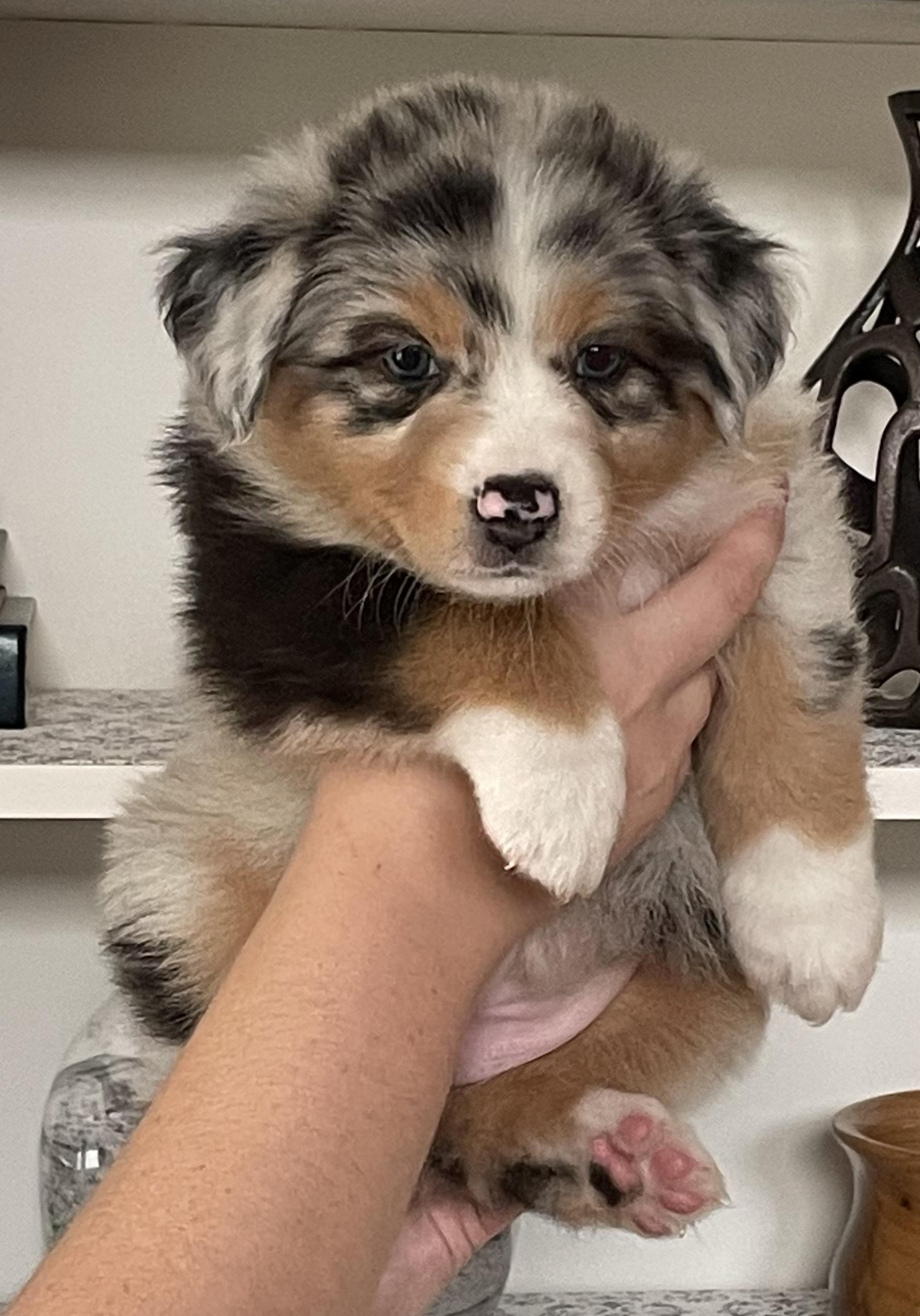 Our puppies include black, red merle, blue merle, and red. Colors will vary depending on the parent dogs.
