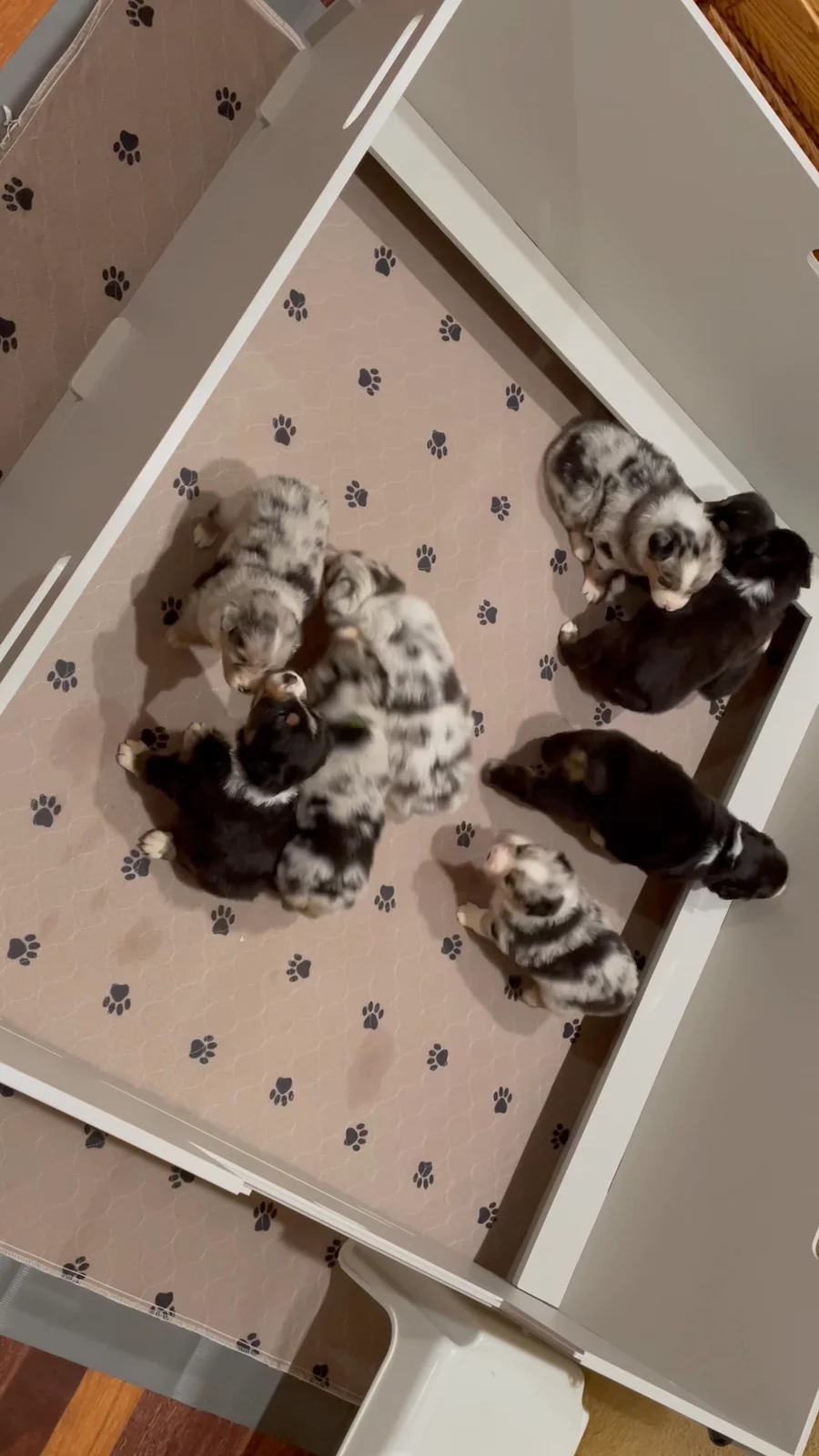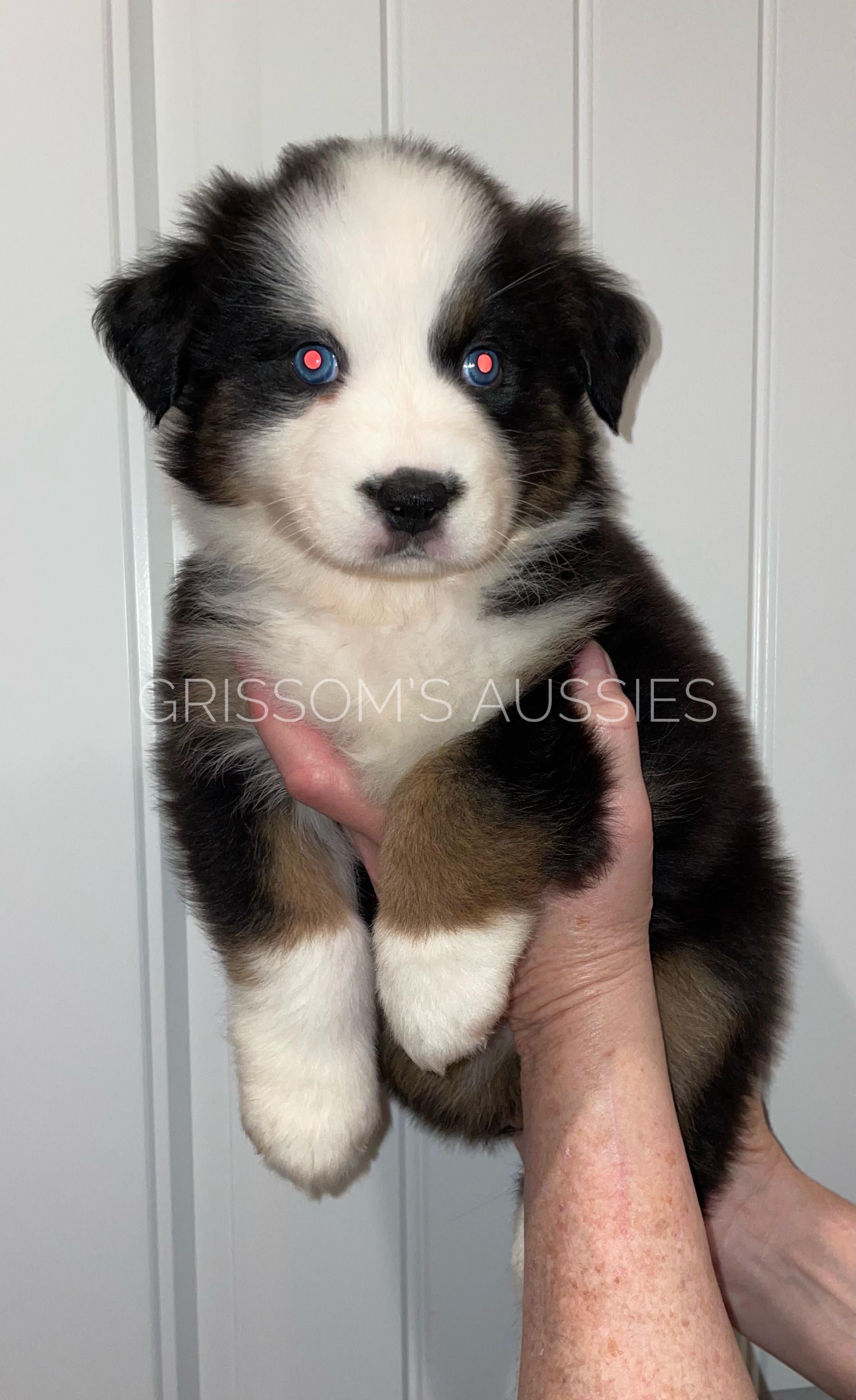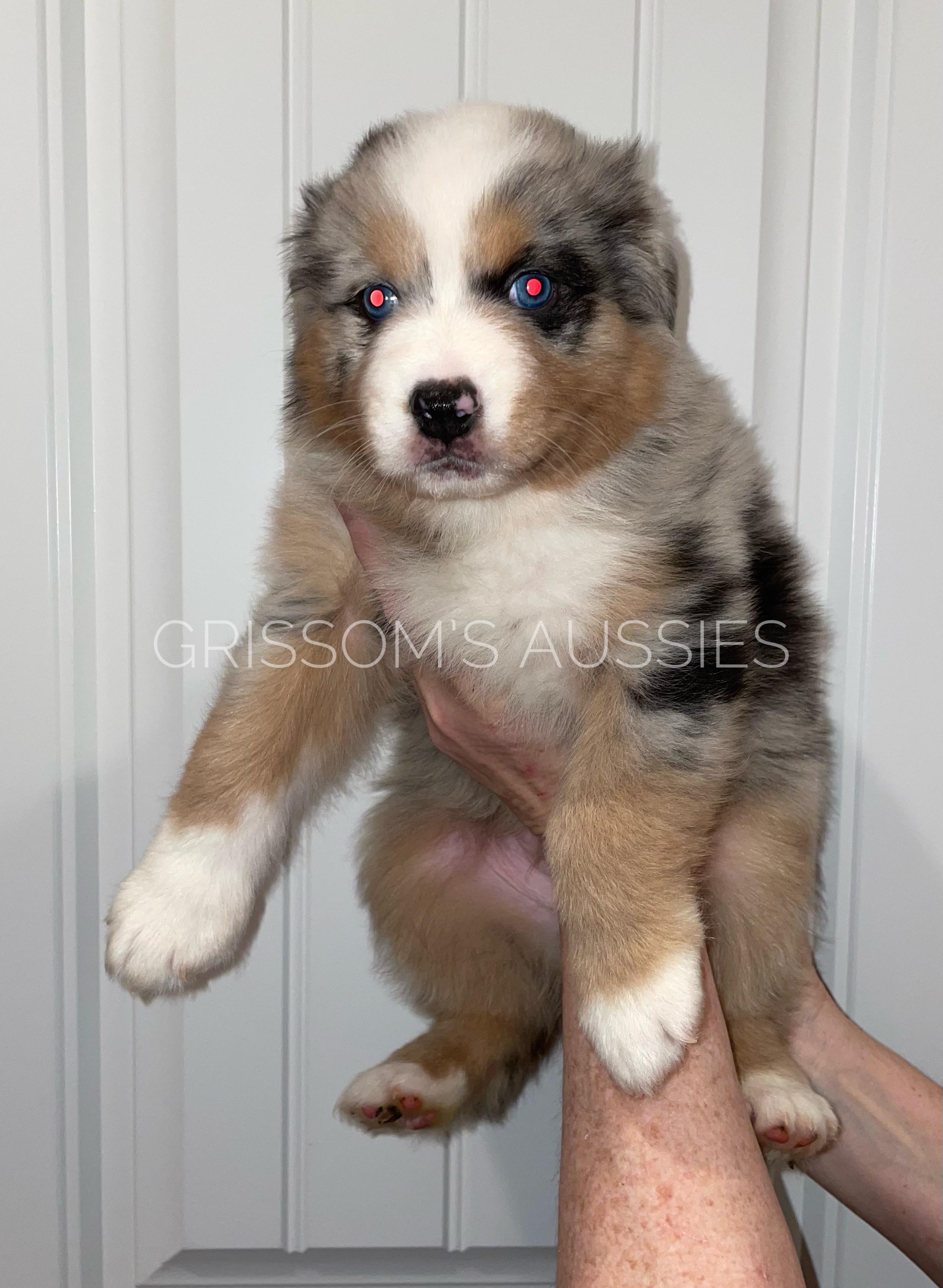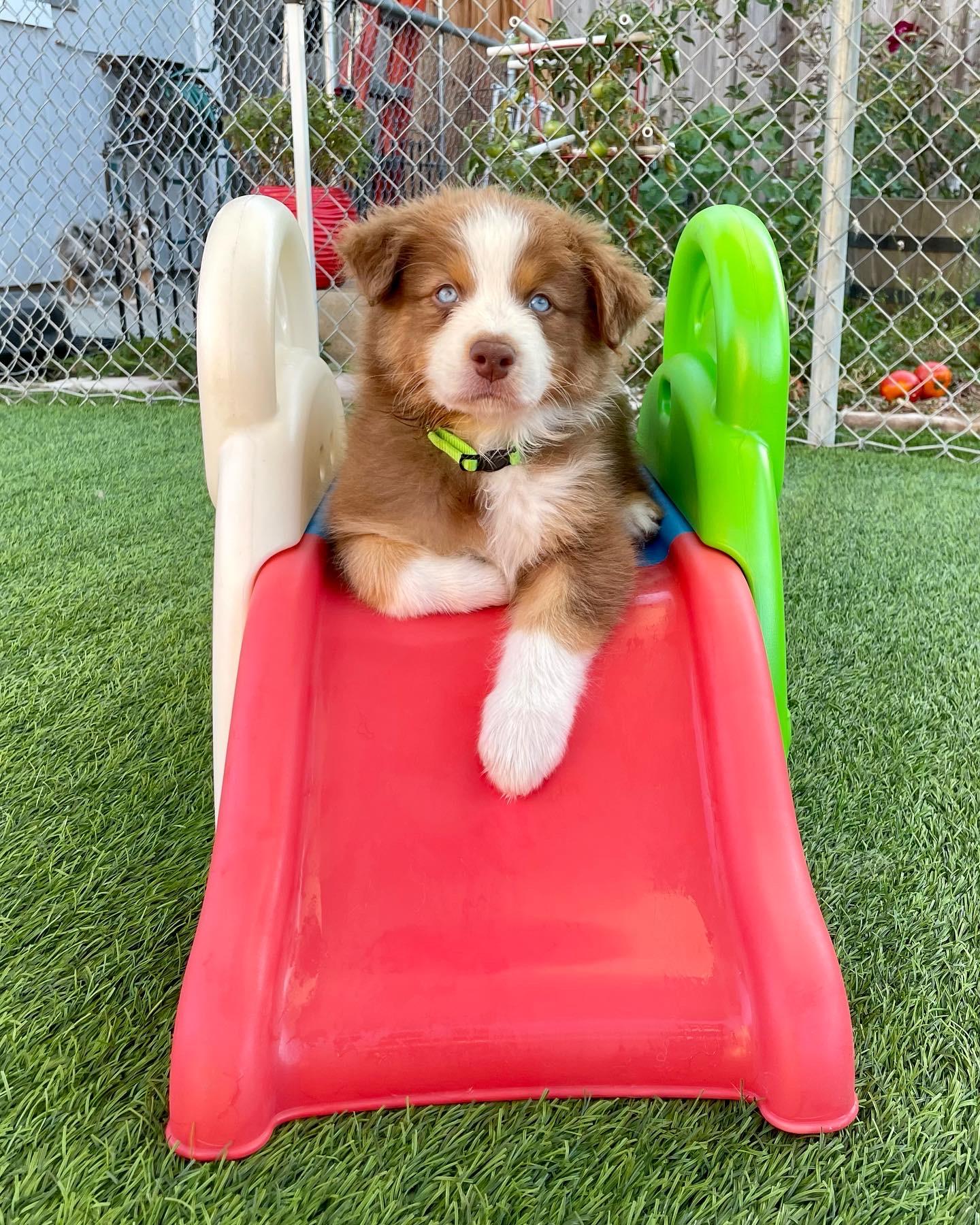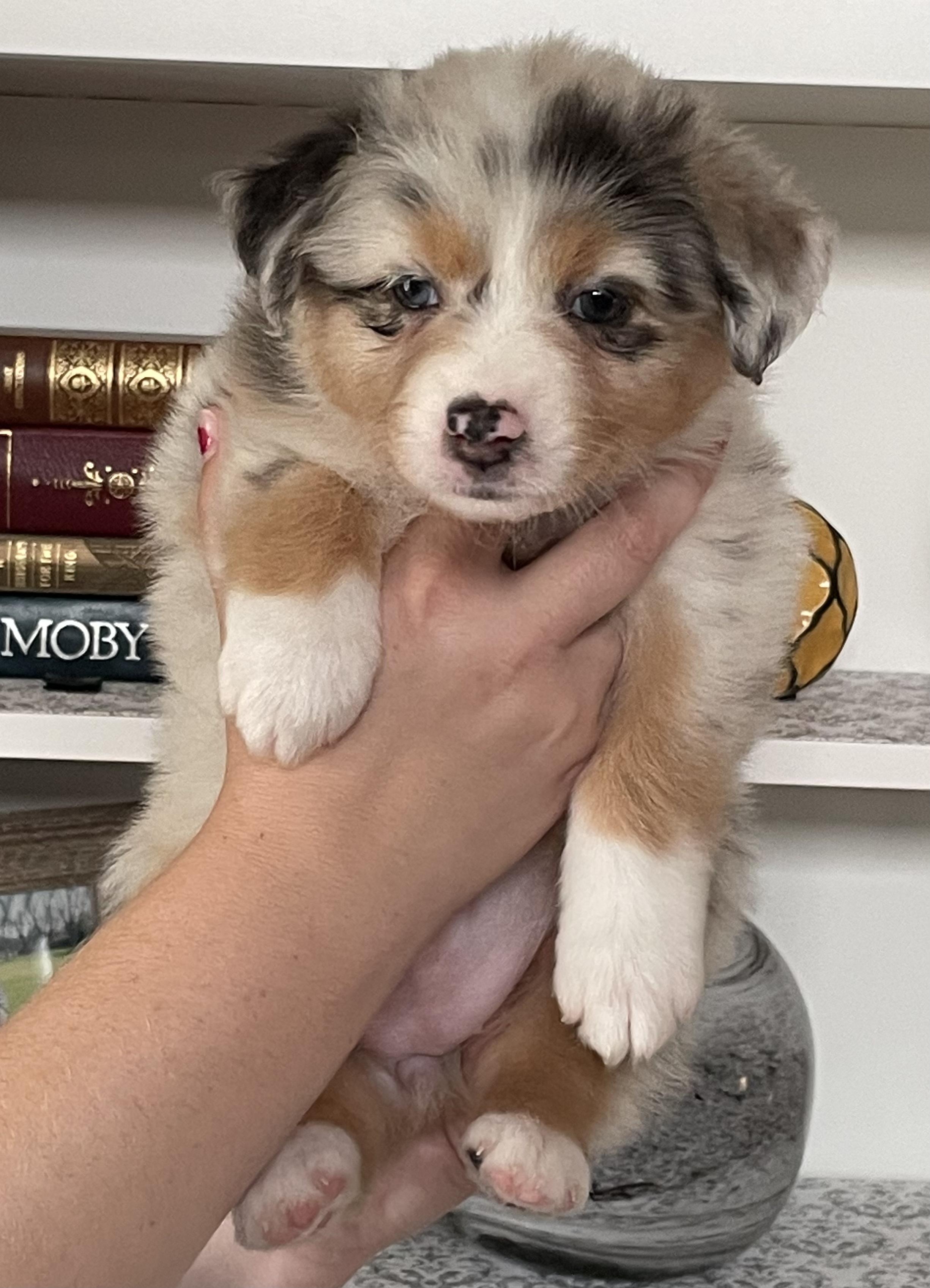 Our puppies include black, red merle, blue merle, and red. Colors will vary depending on the parent dogs.