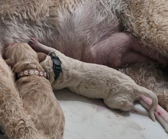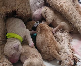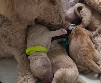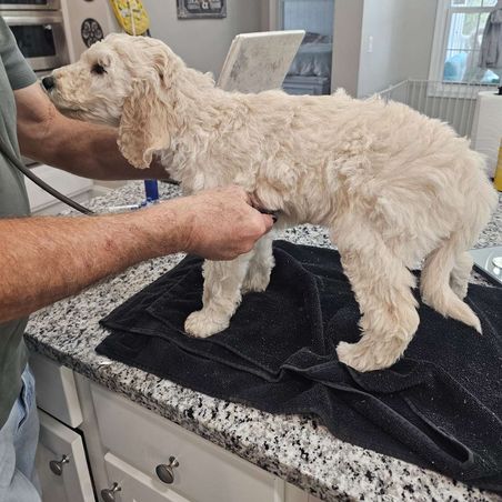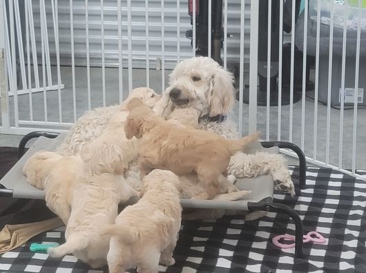 My grandmother bred, raised, trained and showed Champion Poodles and Boston Bull Terriers which exposed me to this field. After buying our farm and ranch, I get to return to my great love. Midwoofery! Goldendoodles bring so much happiness into a home! F2b and Multi-Gen Goldendoodles are *less likely* to shed. There are no guarantees; however. There is no such thing as "hypoallergenic" dogs.