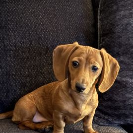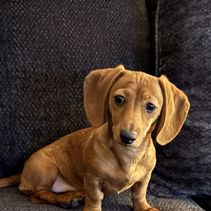 Miss Vayda stole our hearts with her calm nature. She's happiest if she can curl up in a comfy spot beside her human and nap. Incredibly treat-motivated, Vayda is quick to learn a new trick and also quick to show us her stubborn side when she's not feeling like showing off! When she plays she makes the goofiest-sounding growls and yips that always get our other pups excited to play with her. She is 100% a princess and she reminds us of that almost every night when she curls up on our pillows and refuses to move. Our girl is loyal, independent, and exactly as lazy as you'd expect a dachshund to be!
