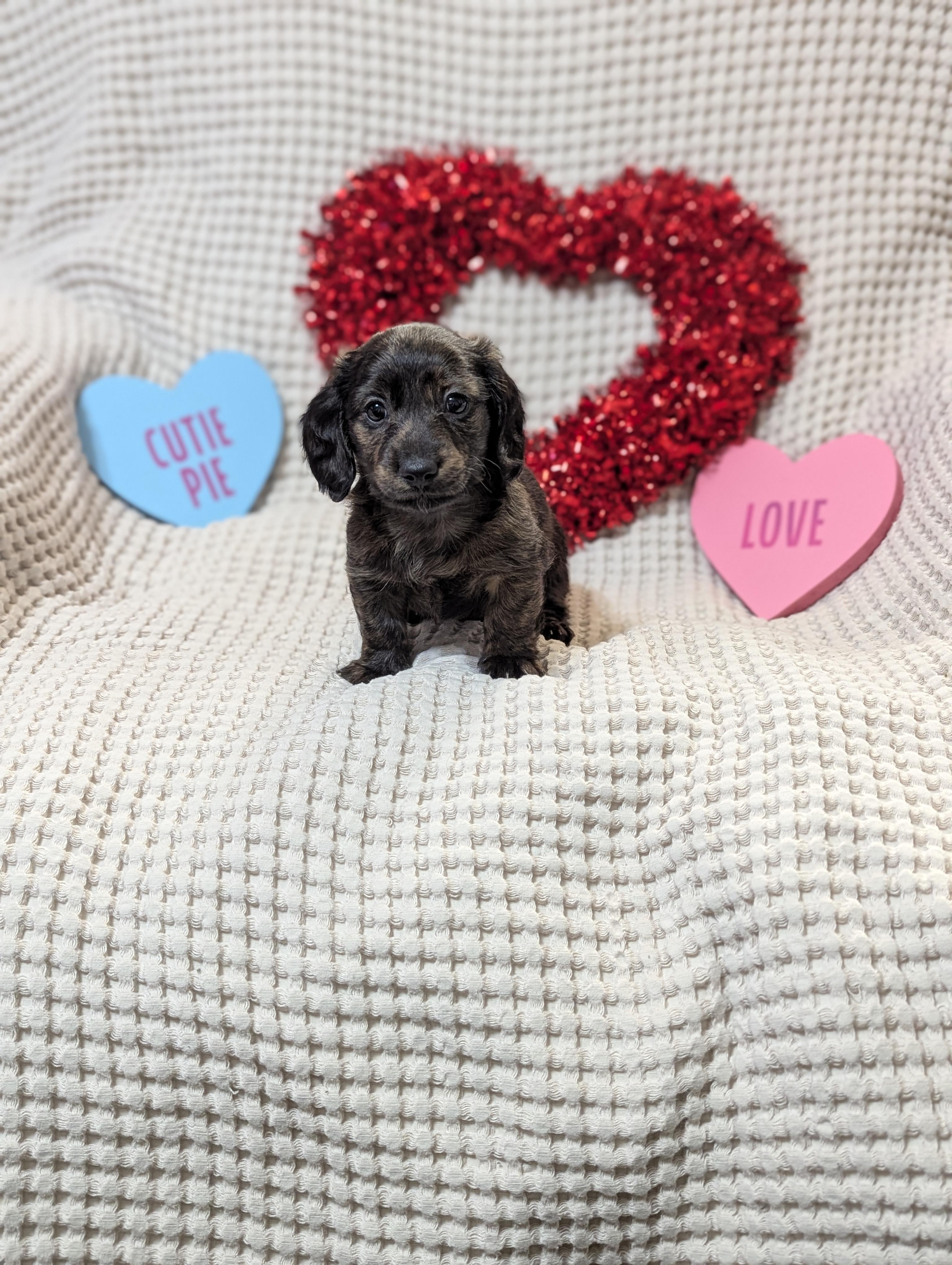What a blessing and a joy our precious Bailey has brought us! Many thanks to Breanna for her kindness, help and professionalism. After reading her profile and talking with her, it was evident she has a heart for dachshunds and gave loving care to her new little puppies. She met us halfway to pick up our new baby and gave us a nice goodie bag for new puppy parents. Breanna from Grove Grown Dachshunds is highly recommended by us and Bailey!
