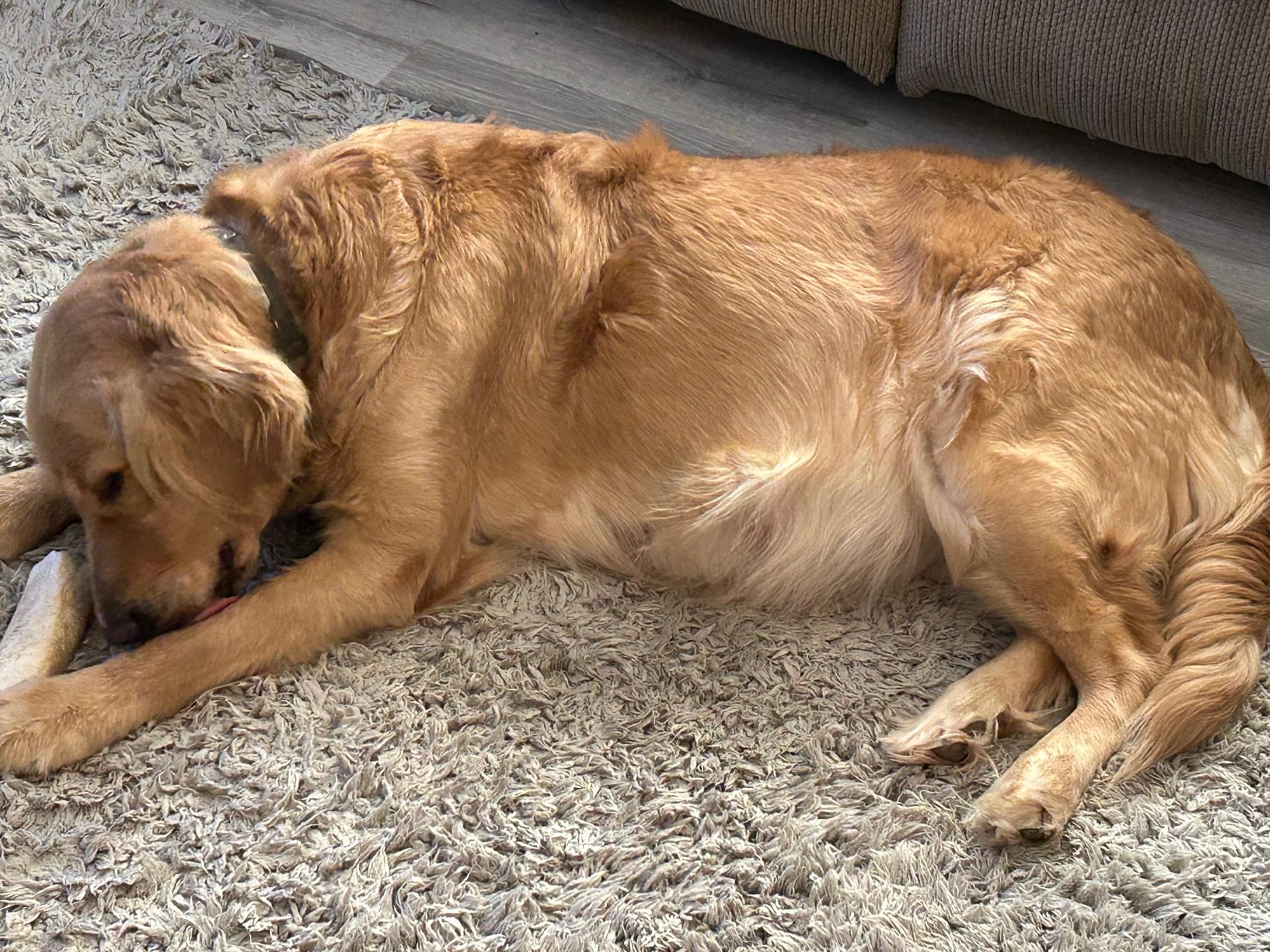 Dede is a female Golden Retriever. Carefully selected as a great representative of her breed, duane decided to make her part of their program. duane has passed Good Dog’s screening process, which involved a review of their breeding practices, environment, and the mental and physical health of their dogs.