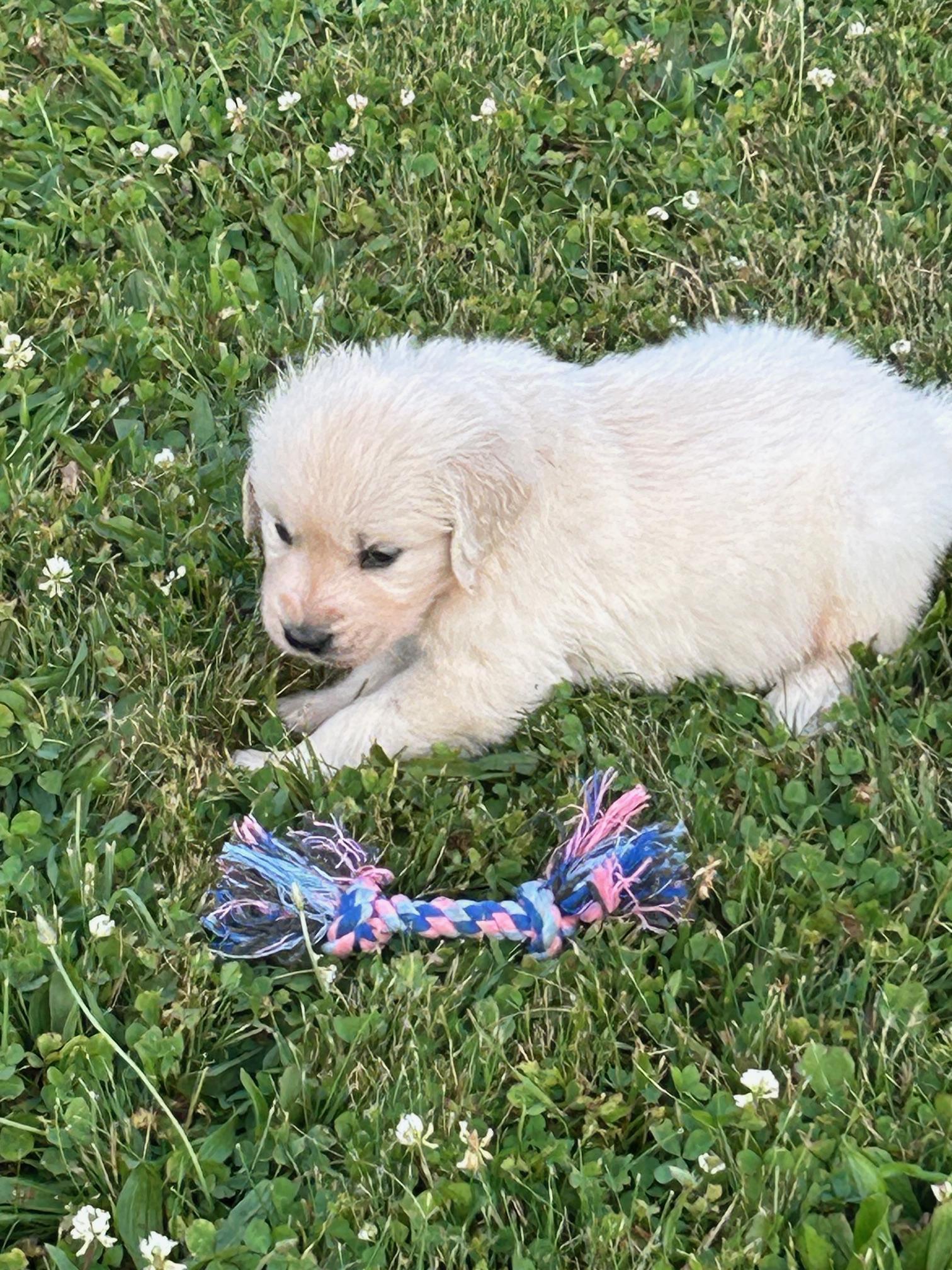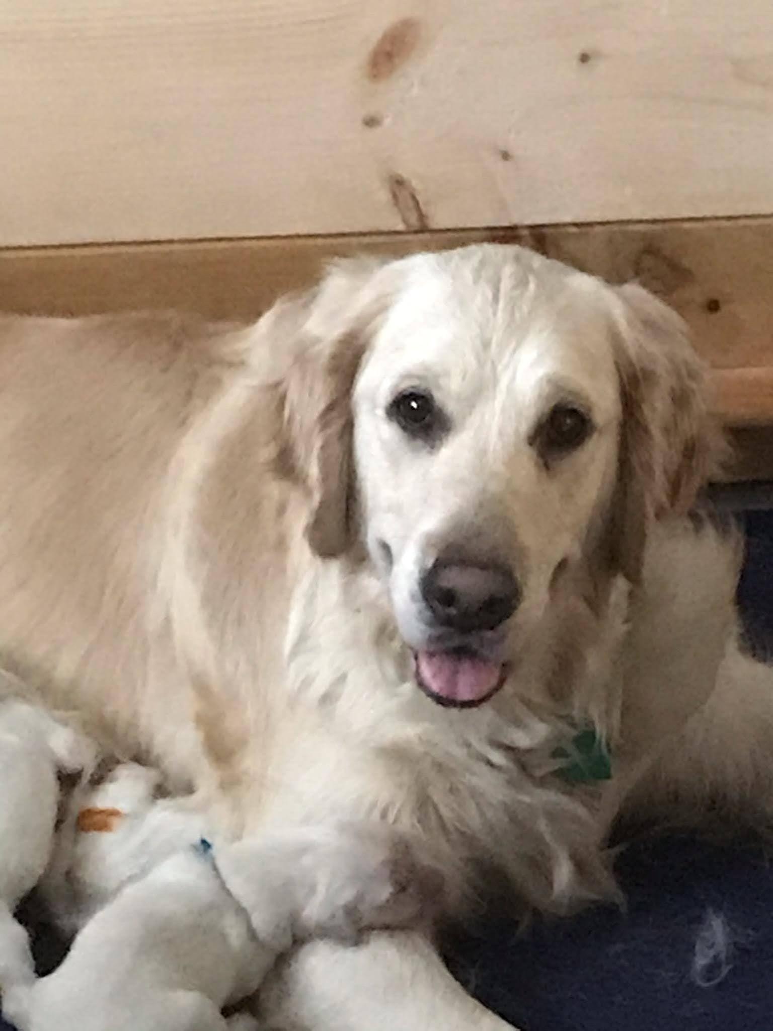 Lucy is an awesome Momma , this is her last litter . She is a very athletic girl who loves to cuddle . So our FB page Grove's Goldens in Bellefonte PA for more pics
