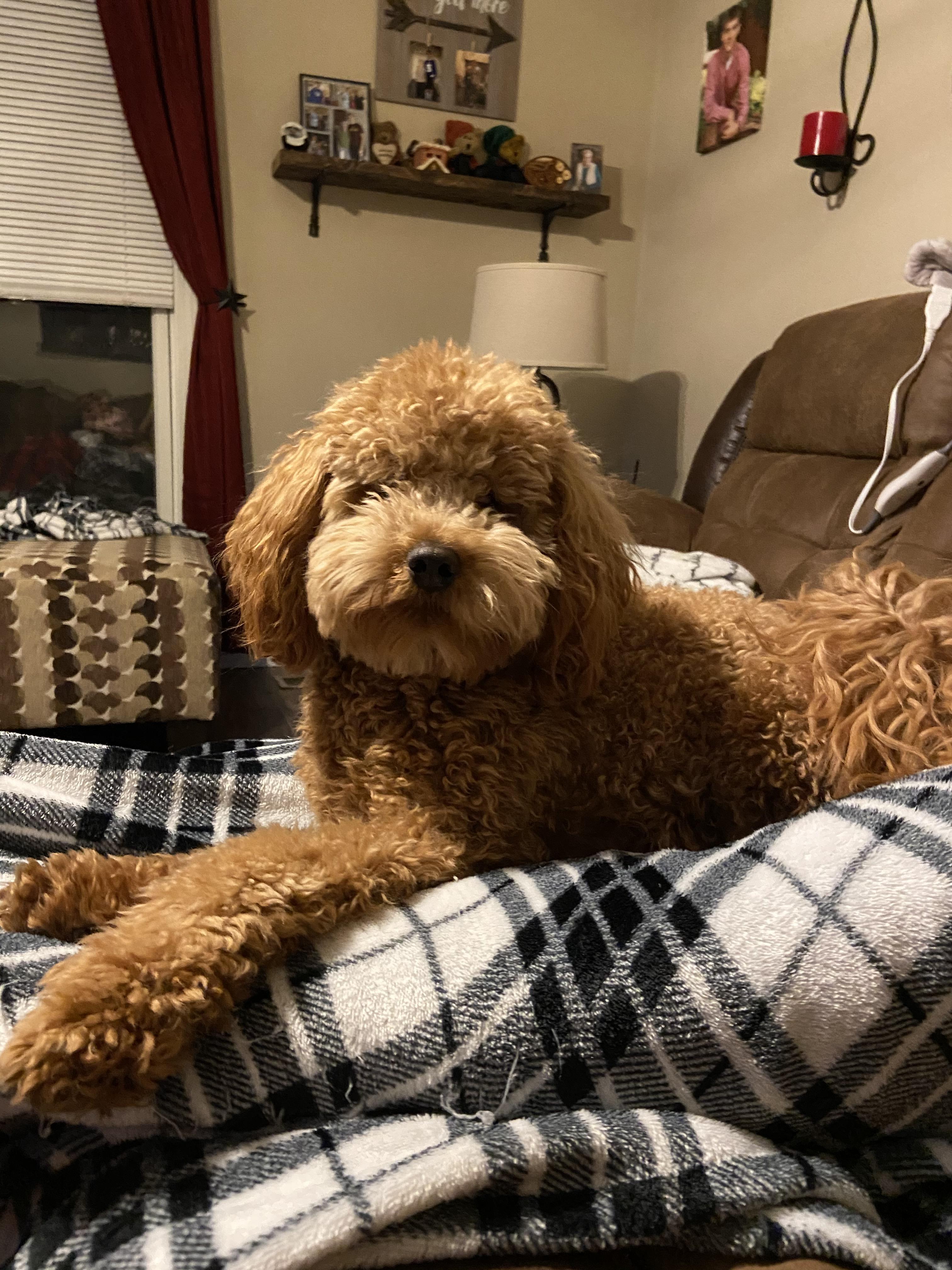 Boo is a female Goldendoodle. Carefully selected as a great representative of her breed, Kelly decided to make her part of their program. Kelly has passed Good Dog’s screening process, which involved a review of their breeding practices, environment, and the mental and physical health of their dogs.