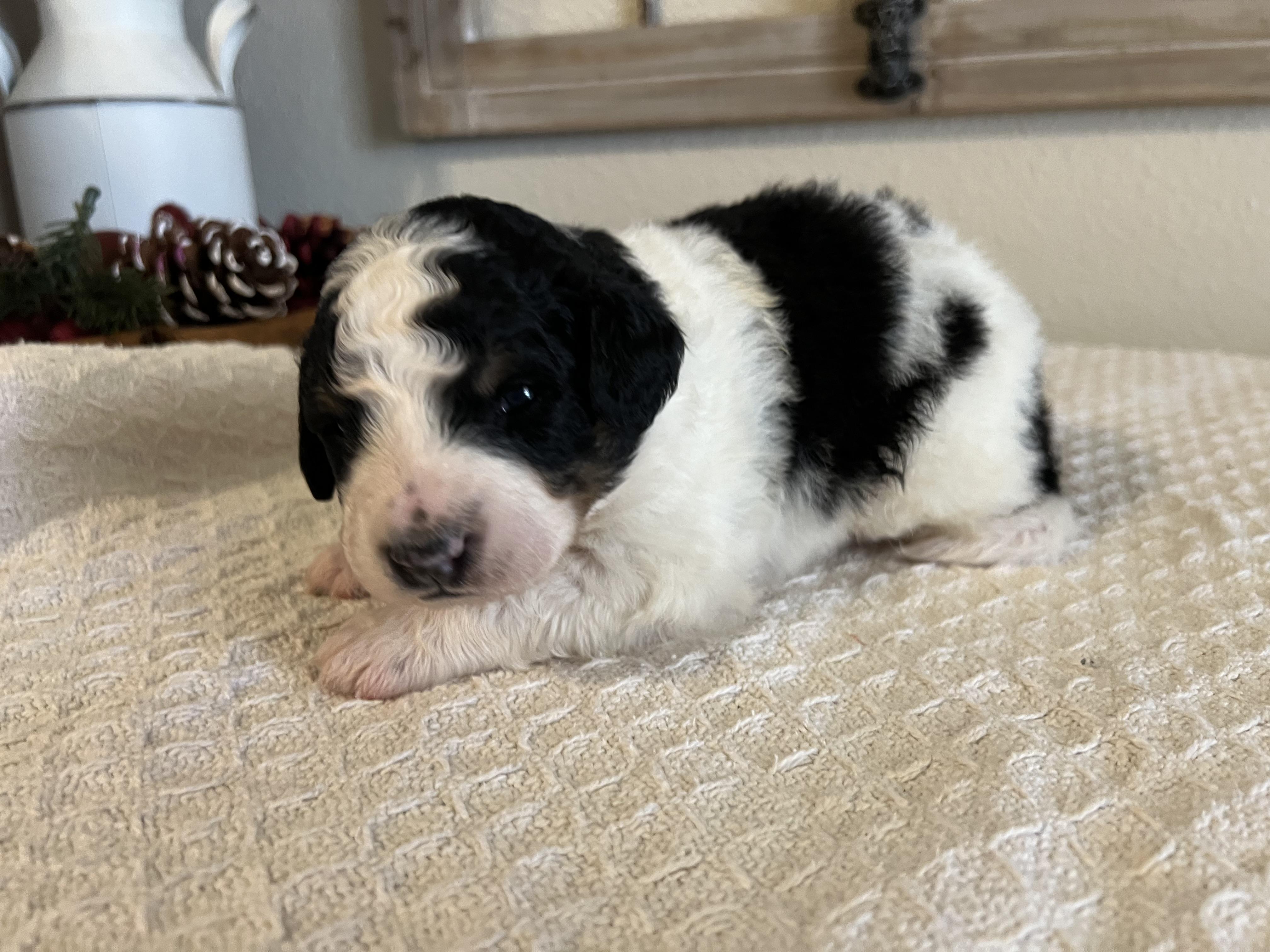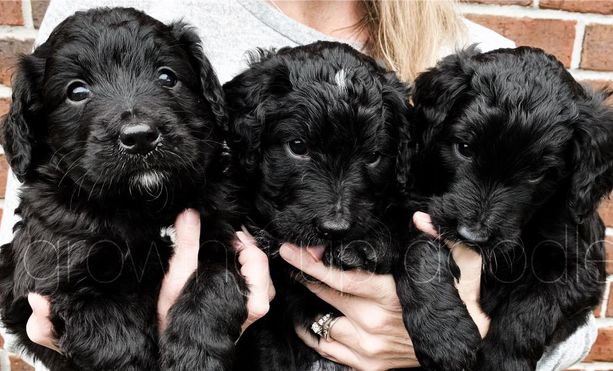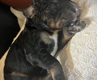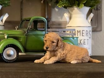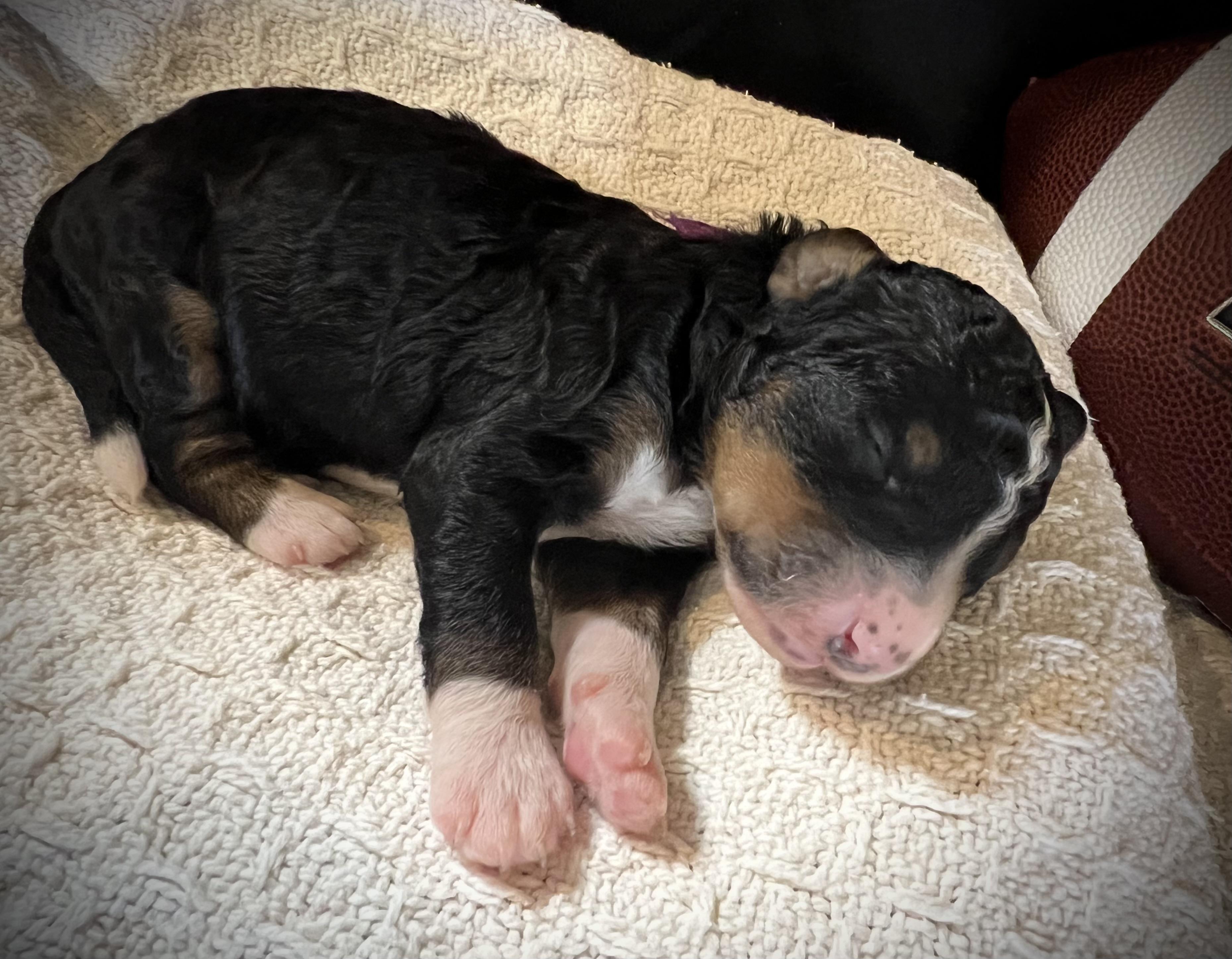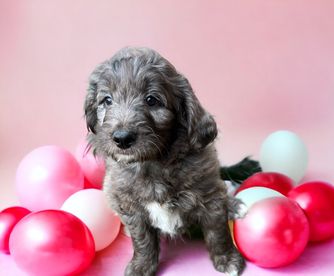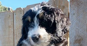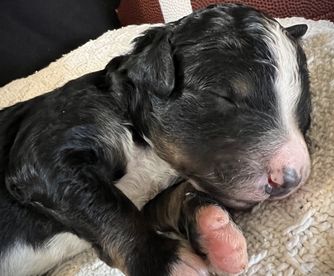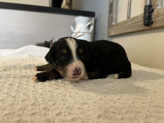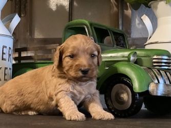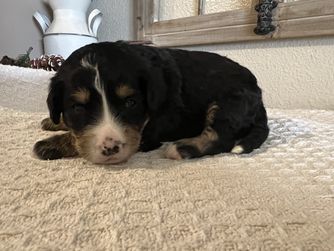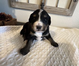 Our Bernedoodle puppies include tri-color and blue merle. Goldendoodle puppies include cream, apricot, and red. Colors will vary depending on the parent dogs.