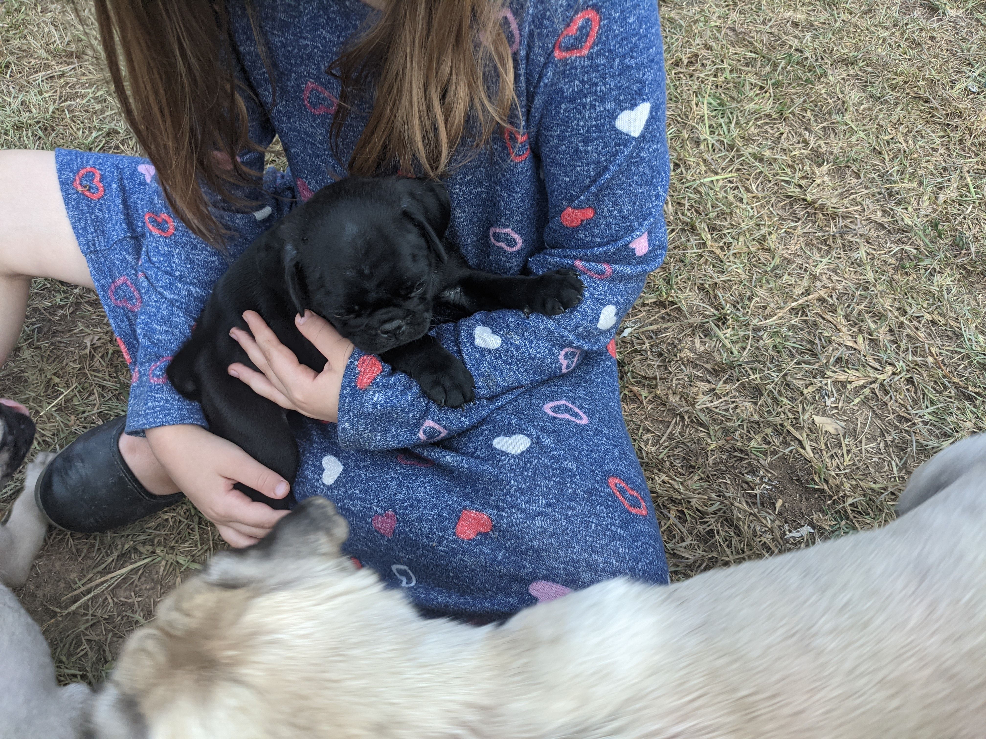 Our puppies include black and fawn. Colors will vary depending on the parent dogs.