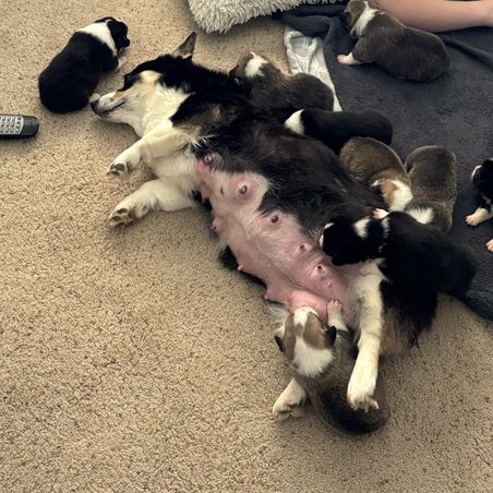 Our breeding program is small and centered around family and farm life. Our dogs grow up with love and action. Our children are very involved in the care of our dogs and puppies. The puppies are exposed to the noise and activities of an active family and indoor/outdoor living - when they are old enough, of course.