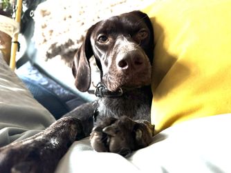 I bought Violet (a 13-mo-old female GSP) from Katherine. She is doing great! Very sweet, you can tell that she had a very happy childhood growing up with Katherine. She is also very smart, already knows a ton of commands, crate trained, house broken, etc. She is athletic, alert, and fast. Also doing great with my other 7-year-old male GSP.
