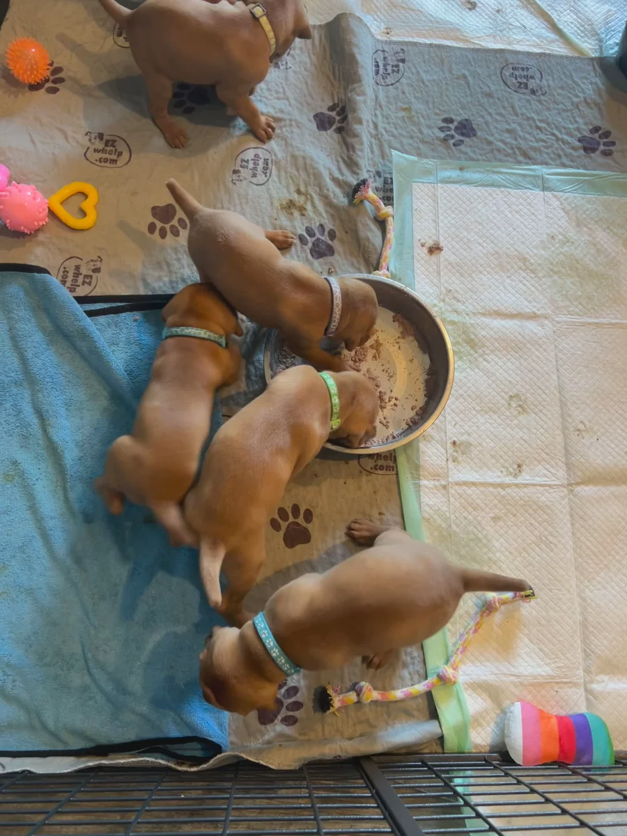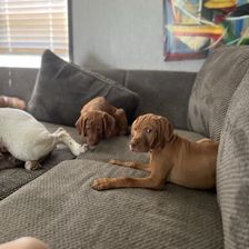 We had an outstanding experience with Catherine and Brandon from the very beginning. They were knowledgeable, responsive, and clearly passionate about the Vizsla breed. Our pup, Copper, came to us healthy, well-socialized, and already accustomed to basic routines—it was clear how much love and care went into his early weeks. Catherine kept us updated with regular photos, helpful information, and thoughtful communication, which made the entire process feel personal and reassuring. Even after we brought Copper home, they remained incredibly supportive during the (very!) challenging but rewarding puppy stage—answering our many questions and checking in on his progress. We’re so grateful to have found such dedicated, responsible breeders, and we couldn’t be happier with our boy. If you’re looking for a Vizsla, we wholeheartedly recommend Catherine and Brandon!