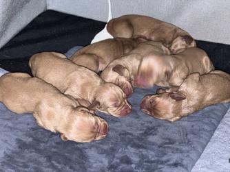 Our puppies are golden rust. Colors will vary depending on the parent dogs.
