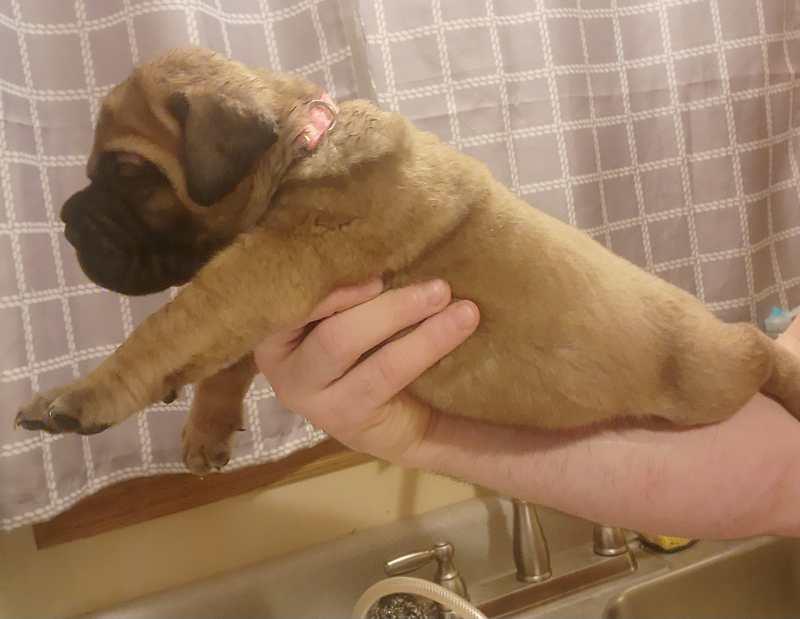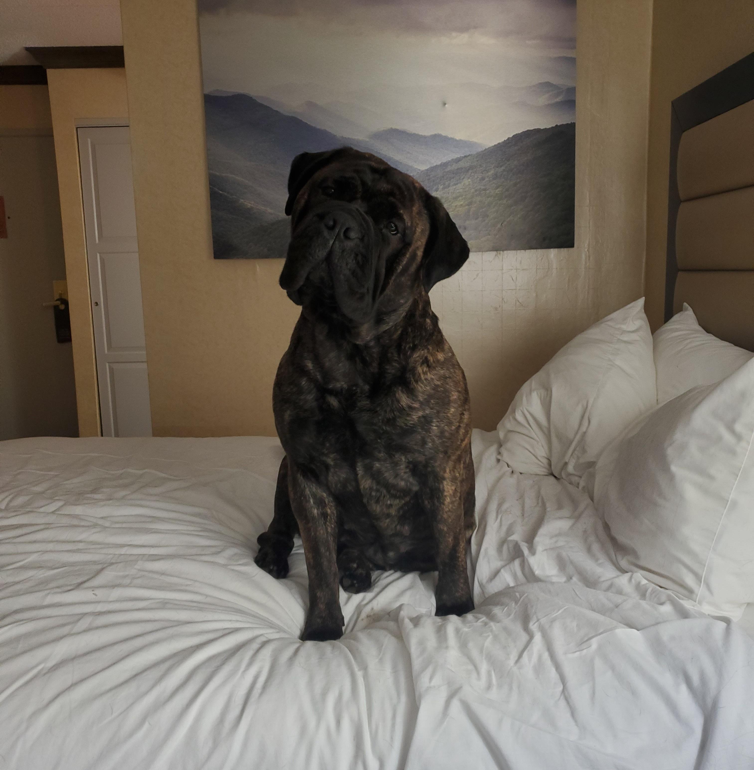 Brat is a female Bullmastiff. Carefully selected as a great representative of her breed, Rich decided to make her part of their program. Rich has passed Good Dog’s screening process, which involved a review of their breeding practices, environment, and the mental and physical health of their dogs.