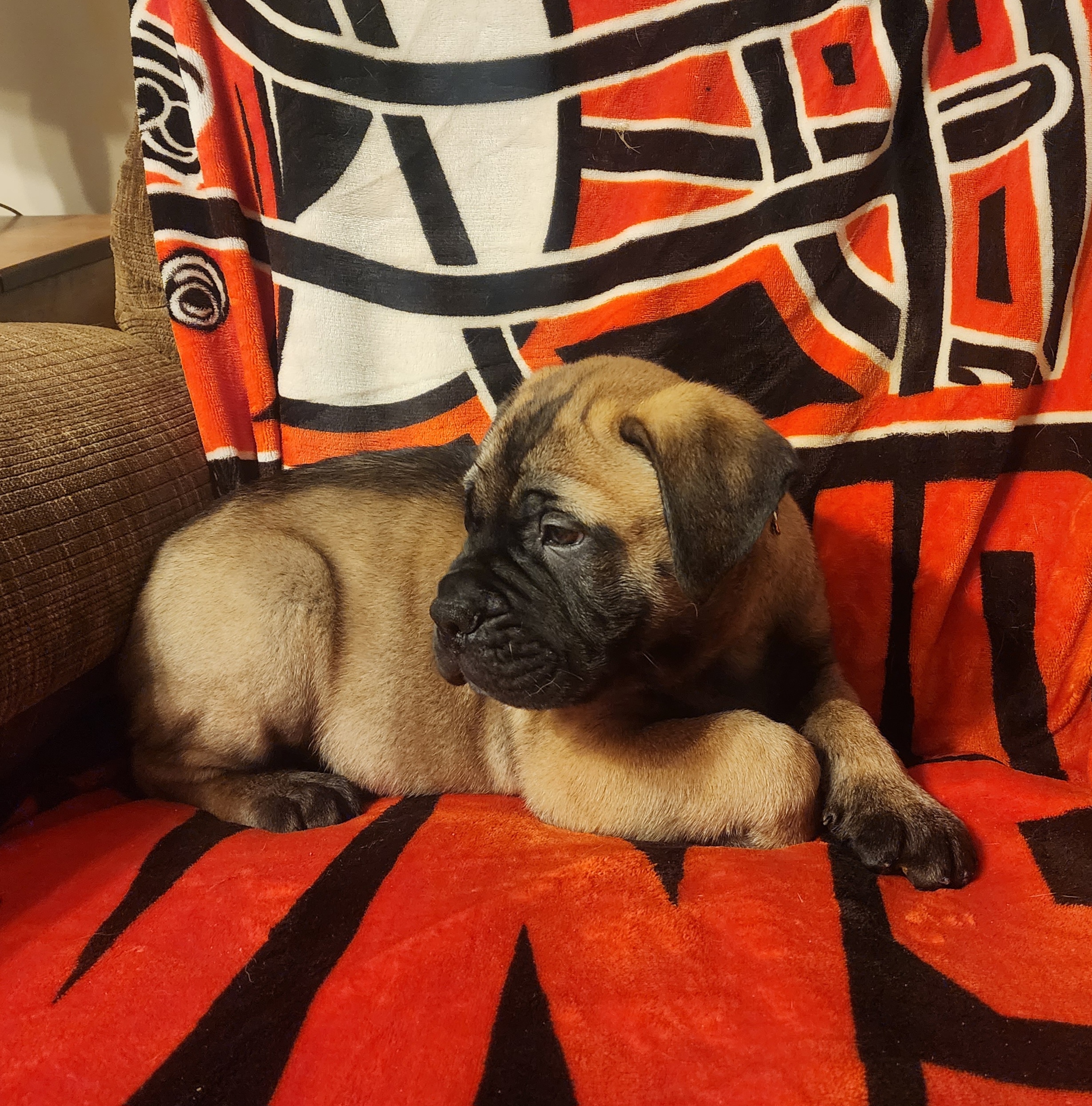 Seven is a female Bullmastiff. Carefully selected as a great representative of her breed, Rich decided to make her part of their program. Rich has passed Good Dog’s screening process, which involved a review of their breeding practices, environment, and the mental and physical health of their dogs.