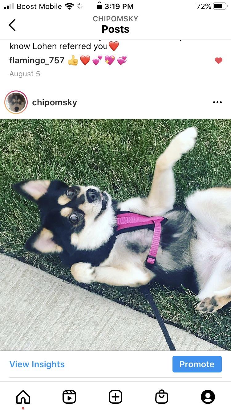 Betsy is a female Pomsky. Carefully selected as a great representative of her breed, Carmelo decided to make her part of their program. Carmelo has passed Good Dog’s screening process, which involved a review of their breeding practices, environment, and the mental and physical health of their dogs.
