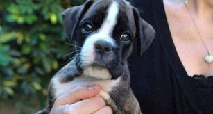 Our puppies include brindle and white. Colors will vary depending on the parent dogs.