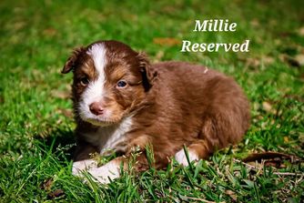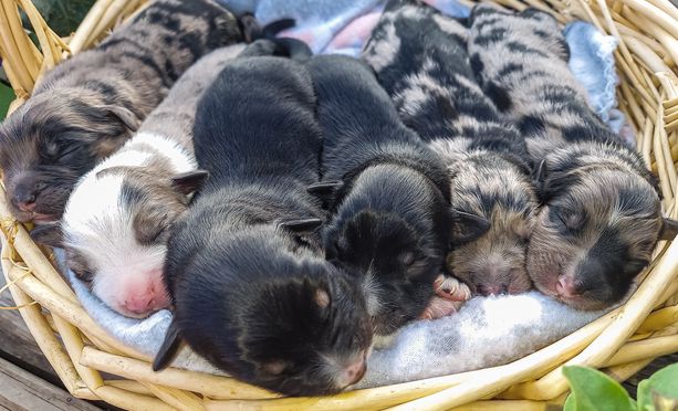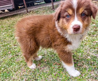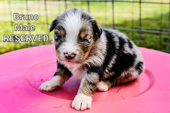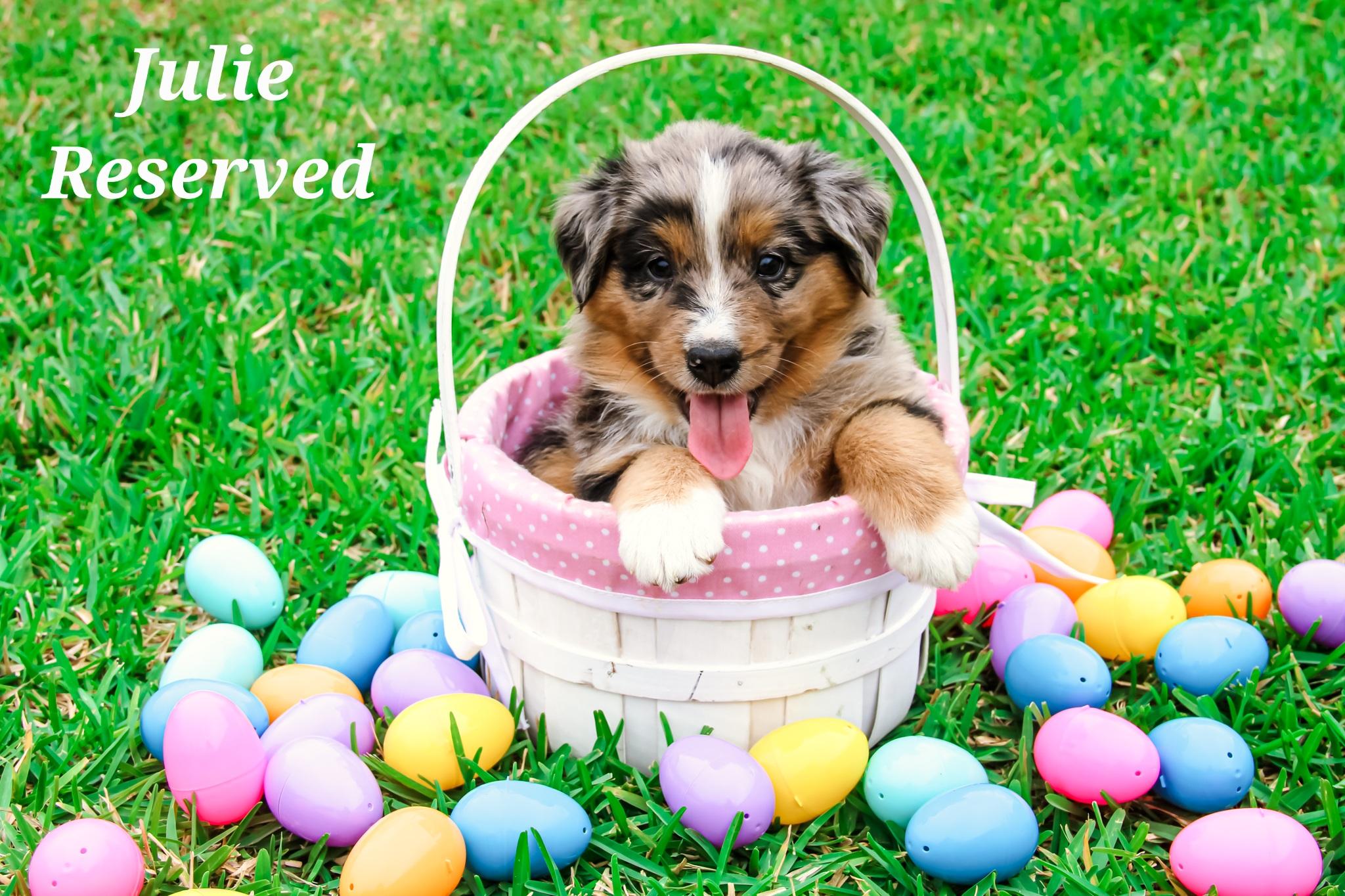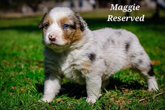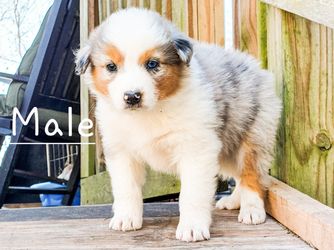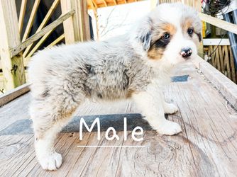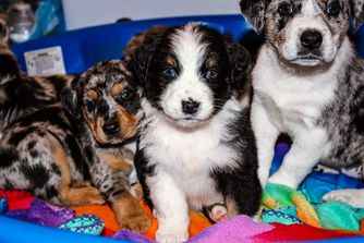 Our puppies include red merle and blue merle. Colors will vary depending on the parent dogs.